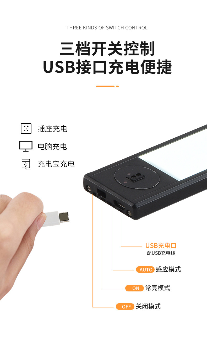 스마트 핸드 스윕 센서 램프 초박형 충전식 무선 자체 접착 캐비닛 램프 주방 입구 침대 옆 램프 LED 라이트 바스토어 가기