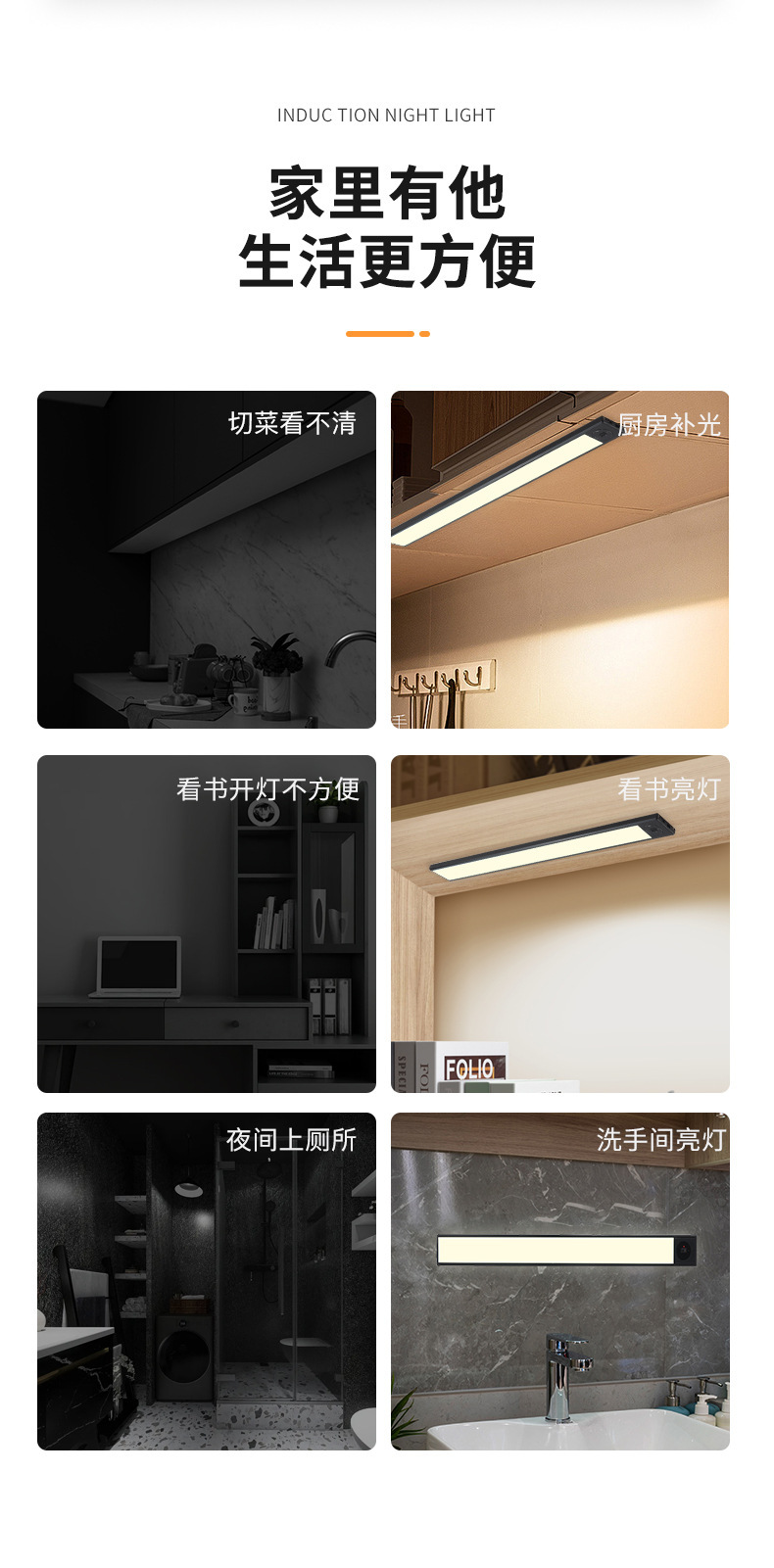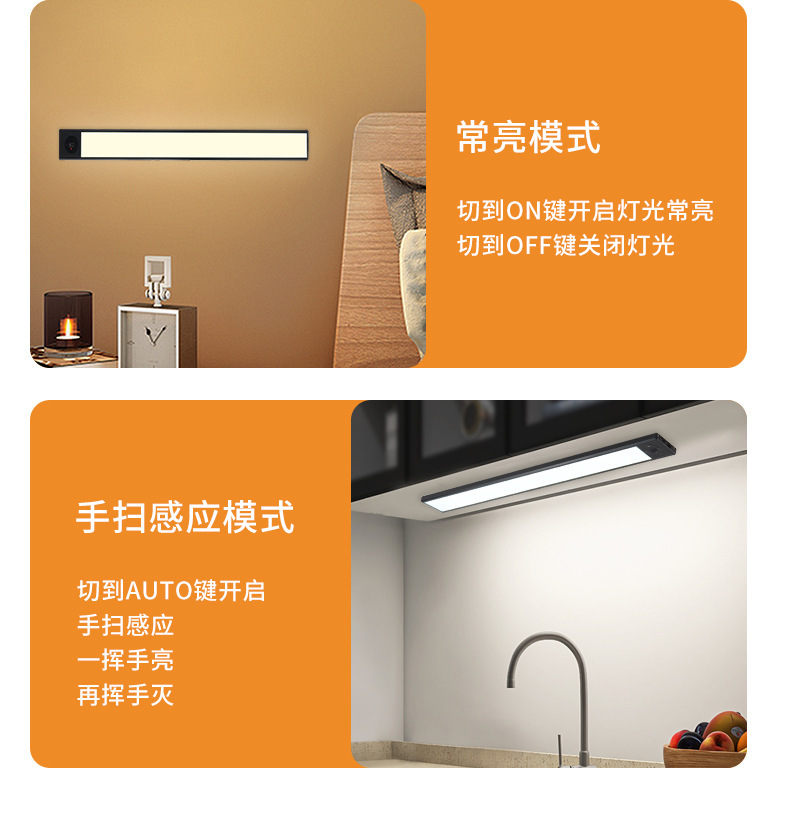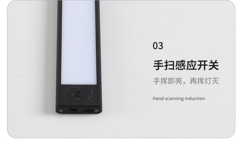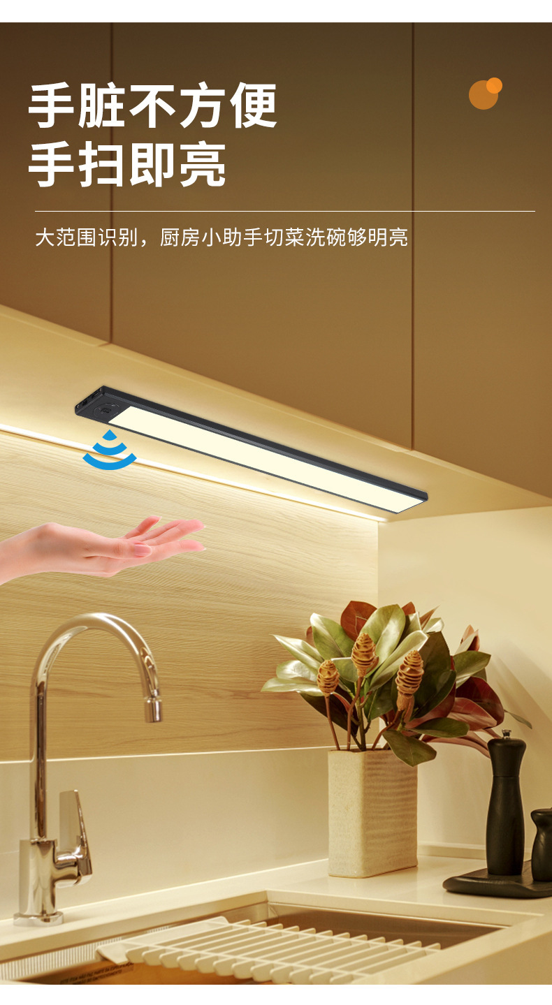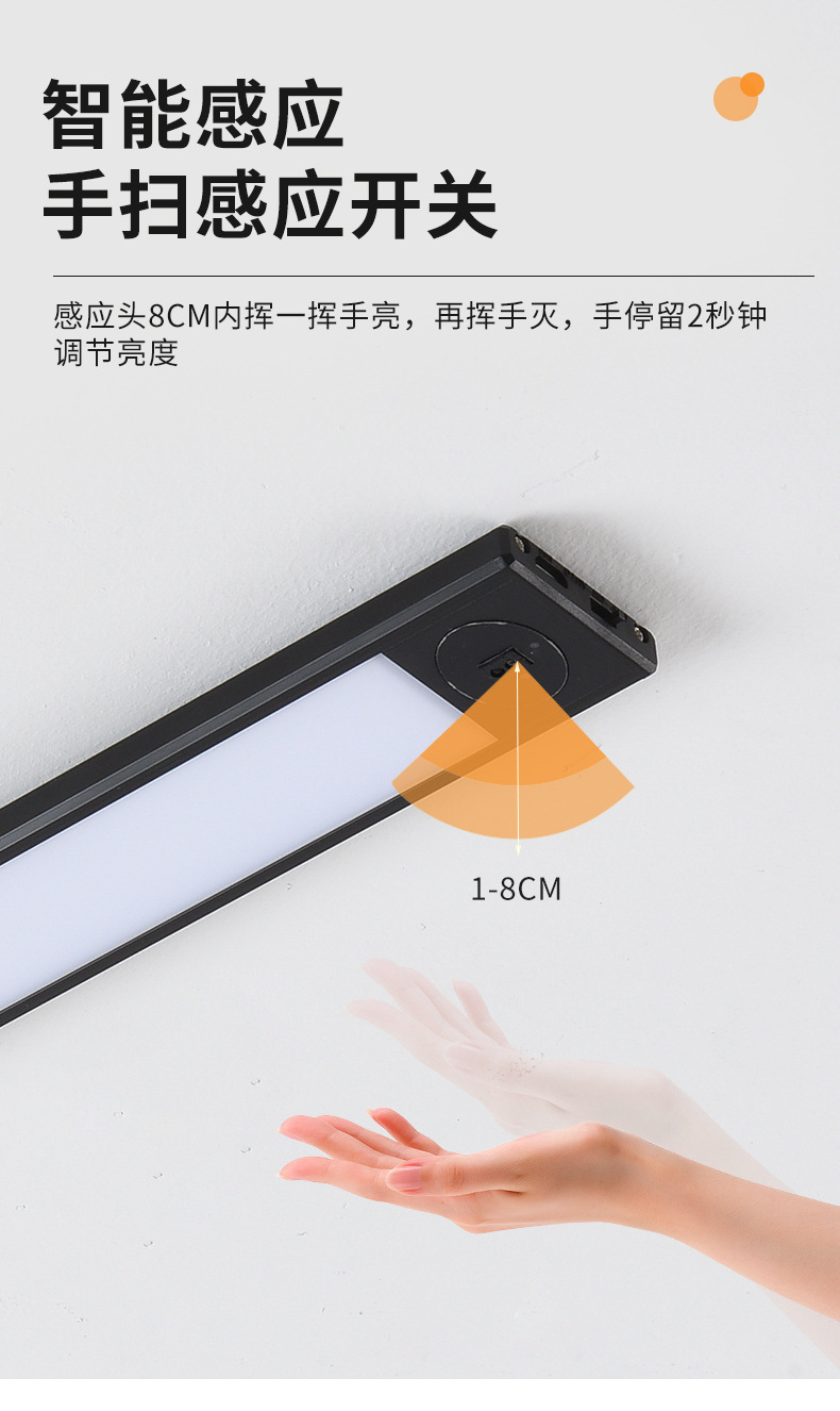 스마트 핸드 스윕 센서 램프 초박형 충전식 무선 자체 접착 캐비닛 램프 주방 입구 침대 옆 램프 LED 라이트 바