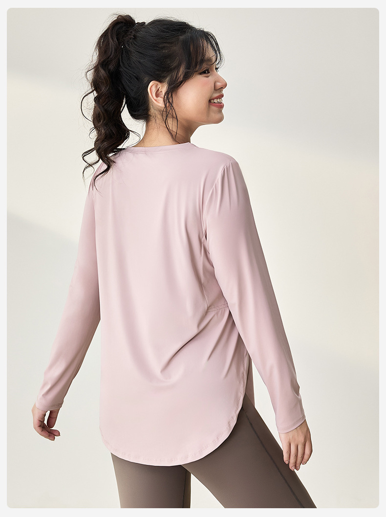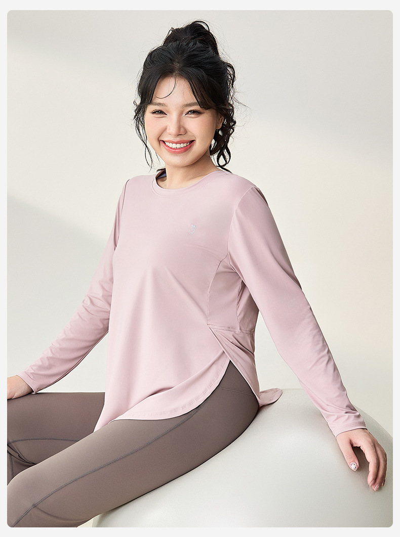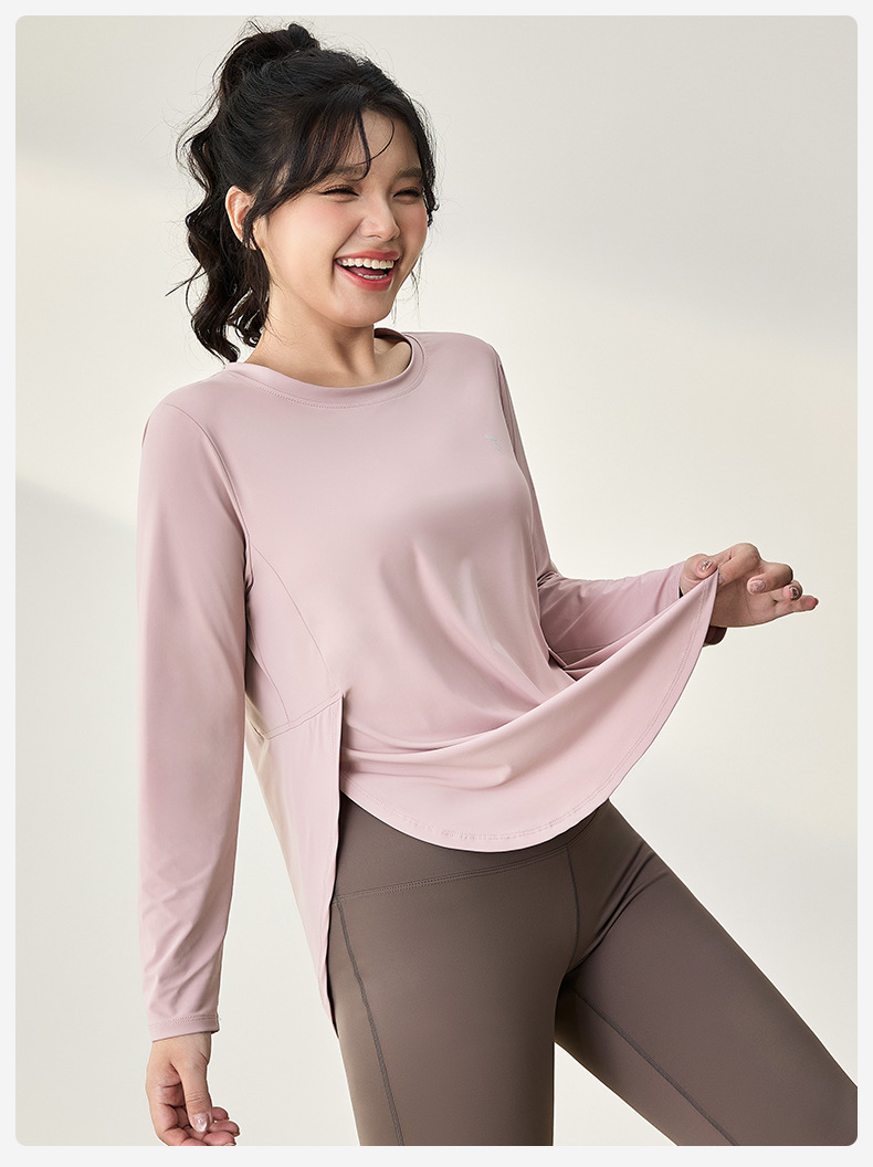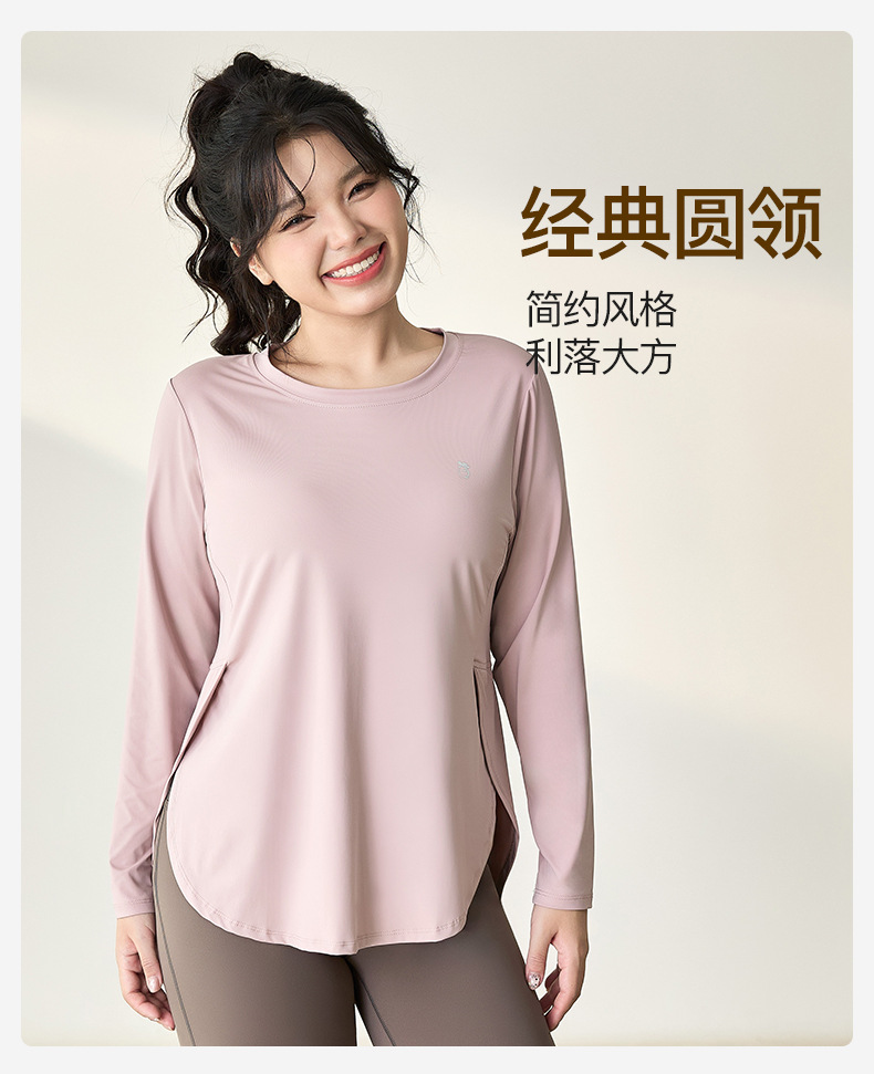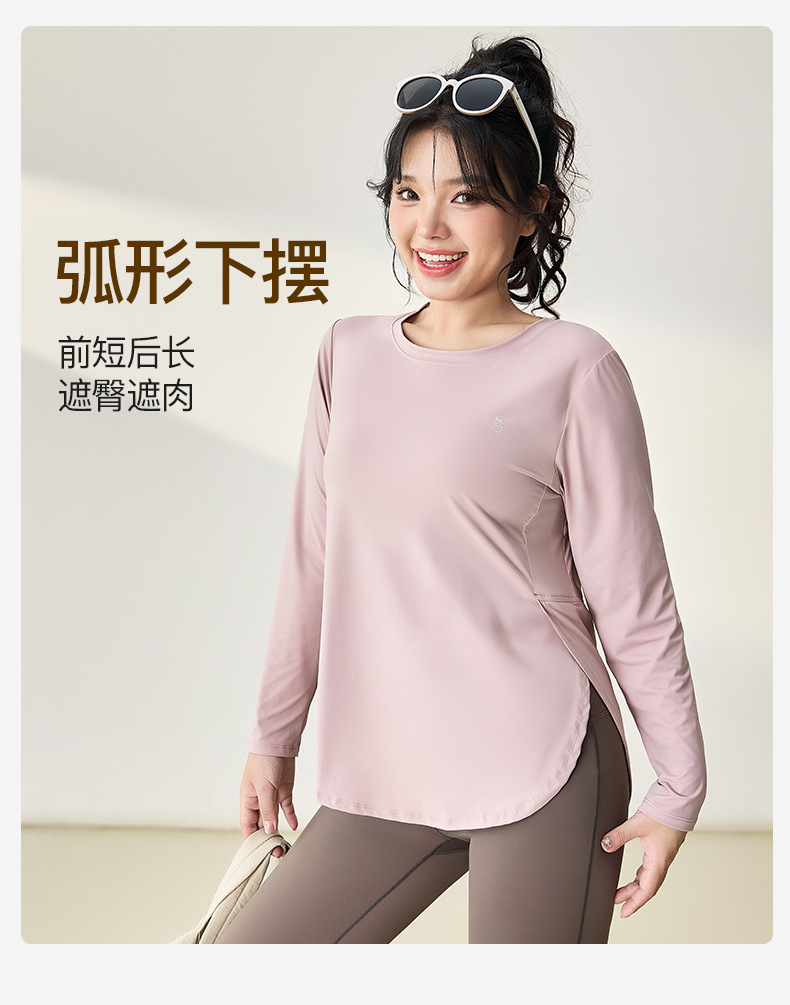 大码裸感瑜伽服女宽松显瘦运动上衣速干T恤胖mm健身训练长袖스토어 가기