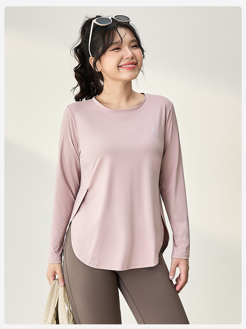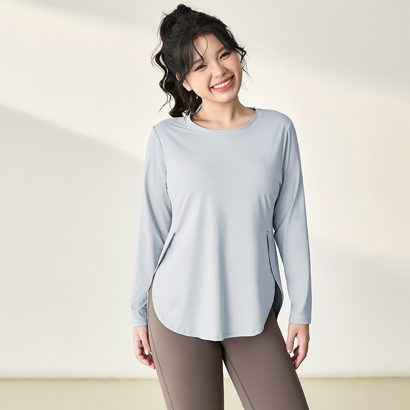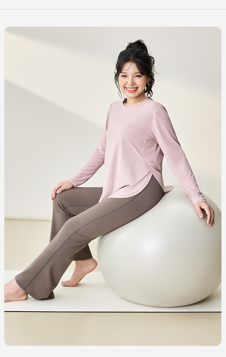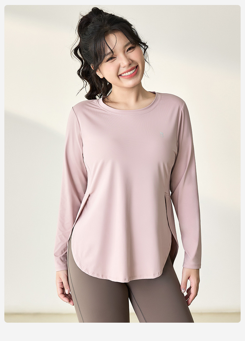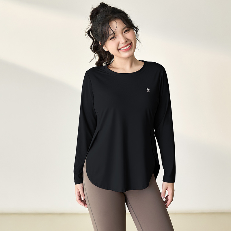 大码裸感瑜伽服女宽松显瘦运动上衣速干T恤胖mm健身训练长袖스토어 가기