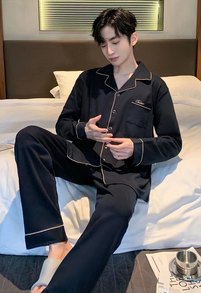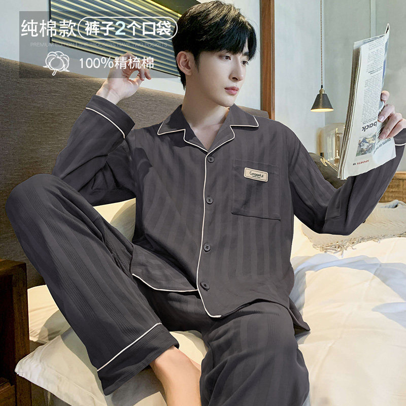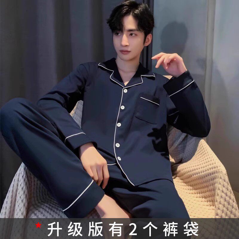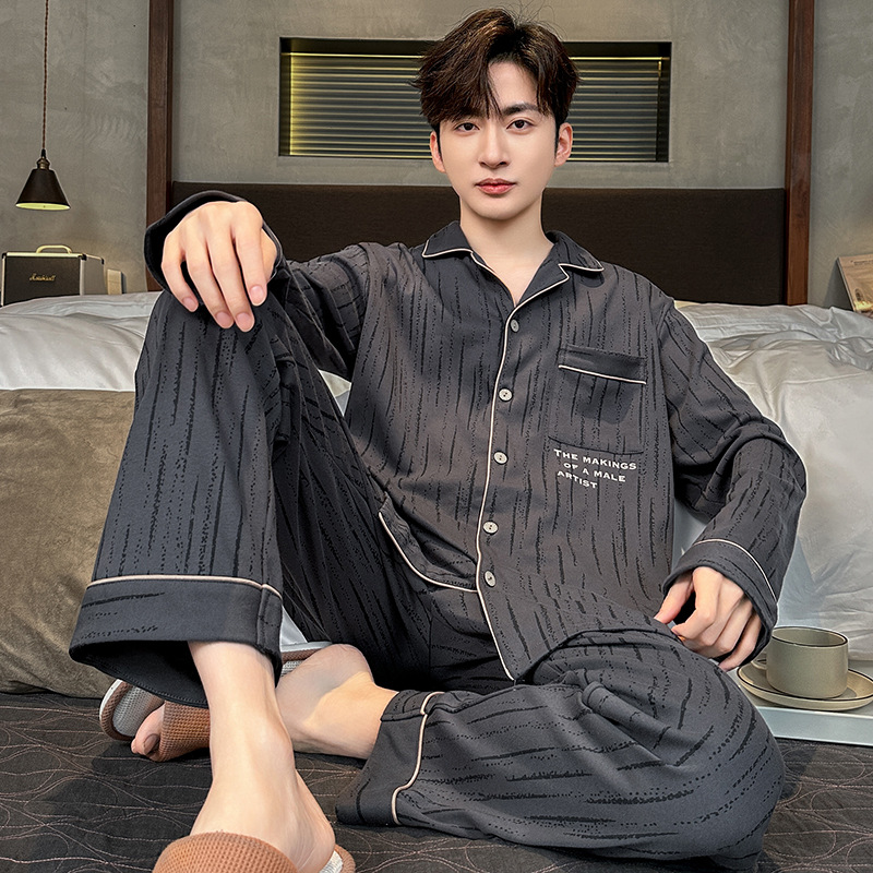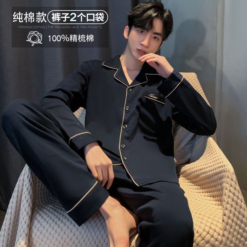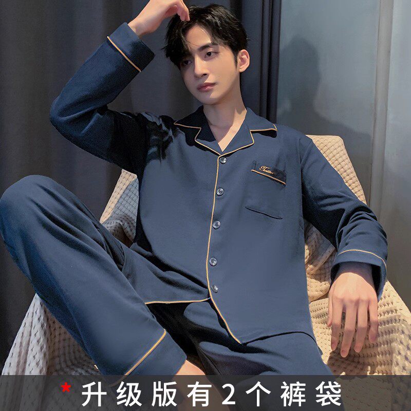 대외 무역 남자 잠옷 긴팔 순면 봄과 가을 얇은 가을과 겨울 여름 의상 소년을위한 2 피스 홈 옷스토어 가기