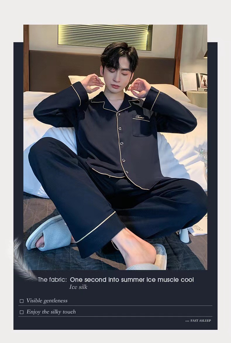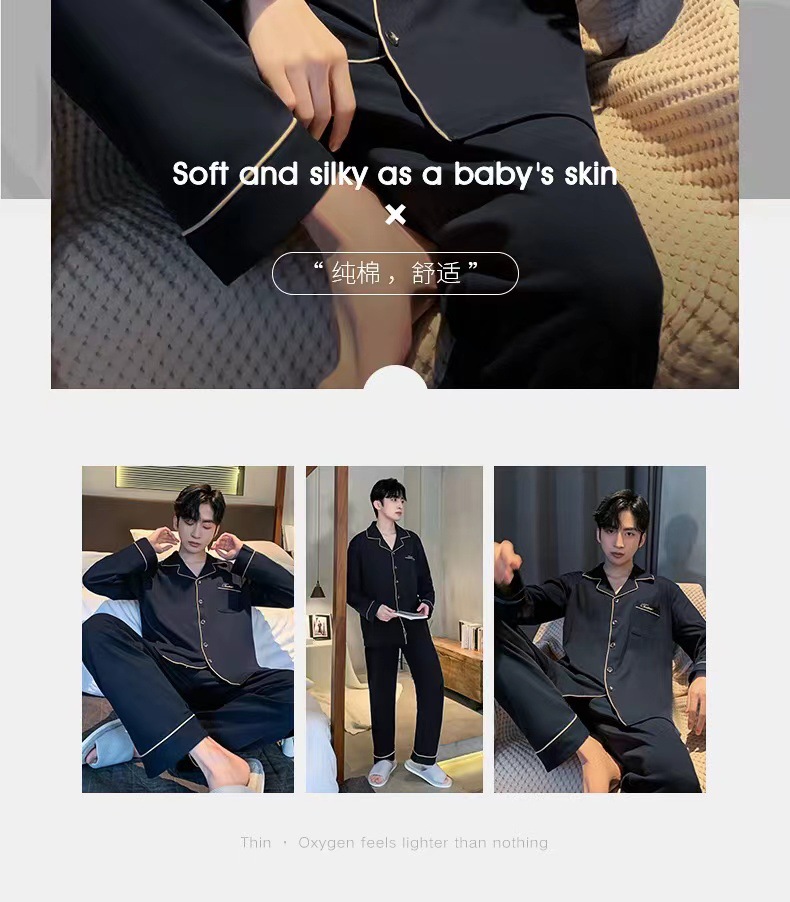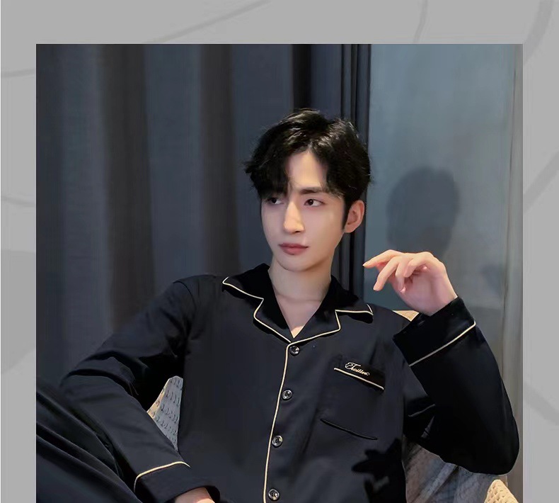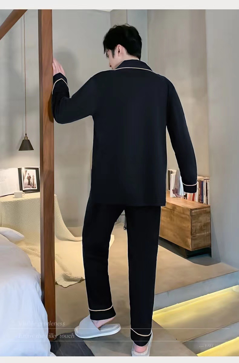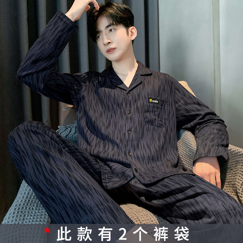 대외 무역 남자 잠옷 긴팔 순면 봄과 가을 얇은 가을과 겨울 여름 의상 소년을위한 2 피스 홈 옷스토어 가기