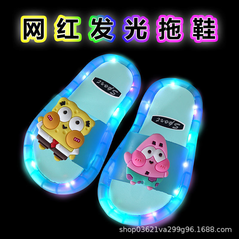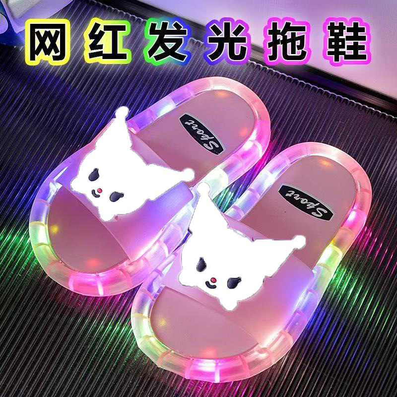 인터넷-유명한 패션 빛나는 어린이 슬리퍼 딸기 크리스탈 신발 반짝이는 조명 소녀의 밝은 샌들스토어 가기