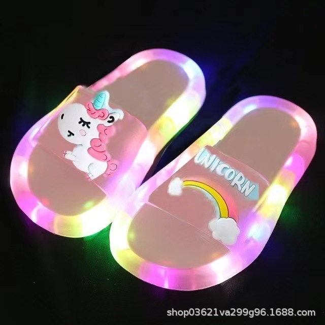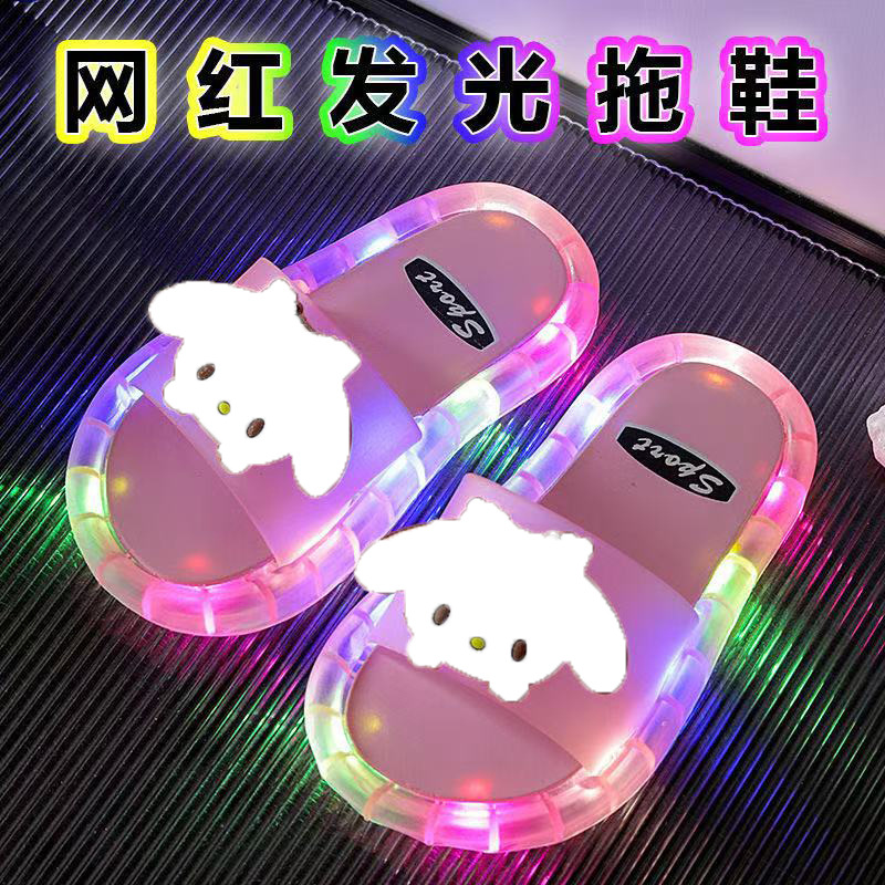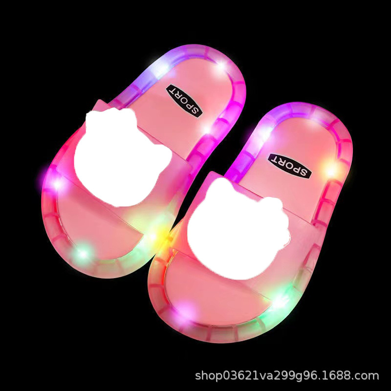 인터넷-유명한 패션 빛나는 어린이 슬리퍼 딸기 크리스탈 신발 반짝이는 조명 소녀의 밝은 샌들