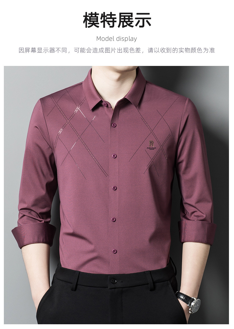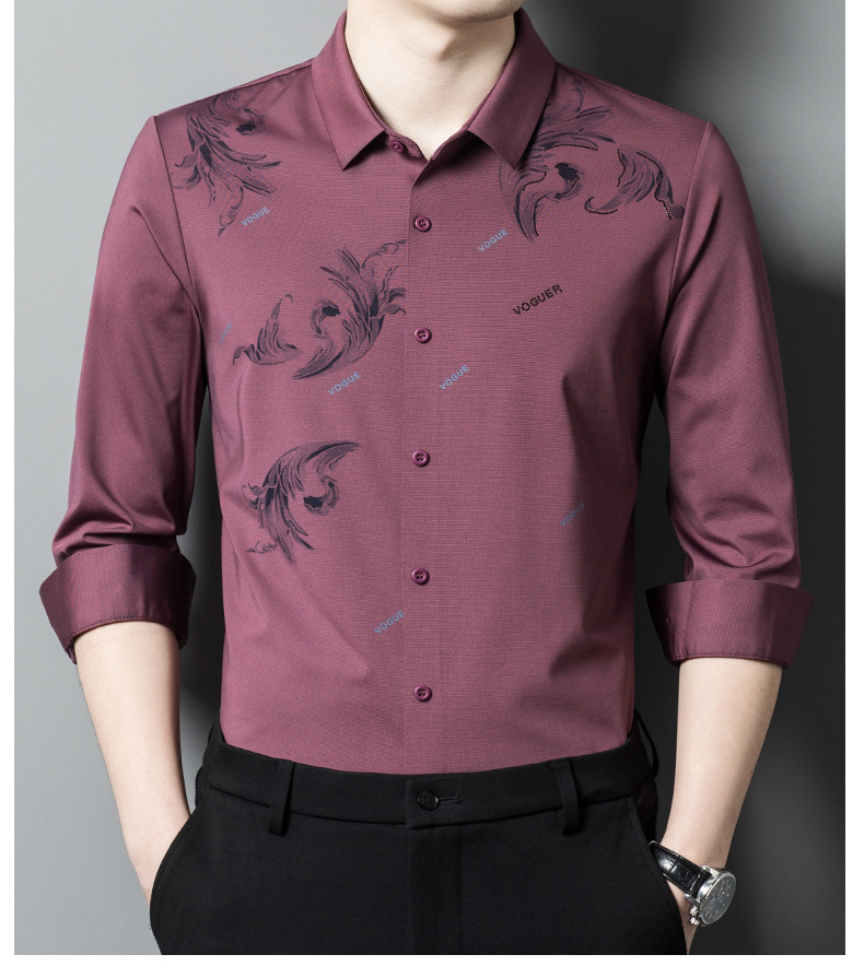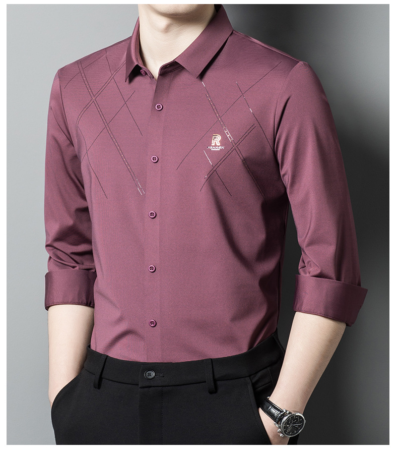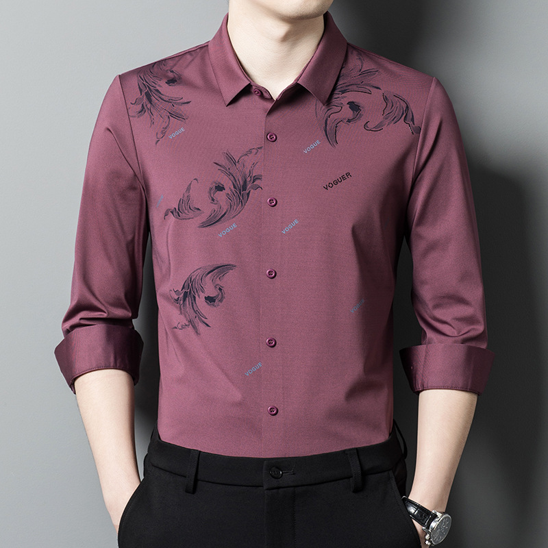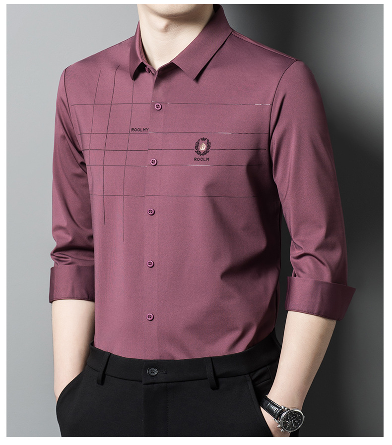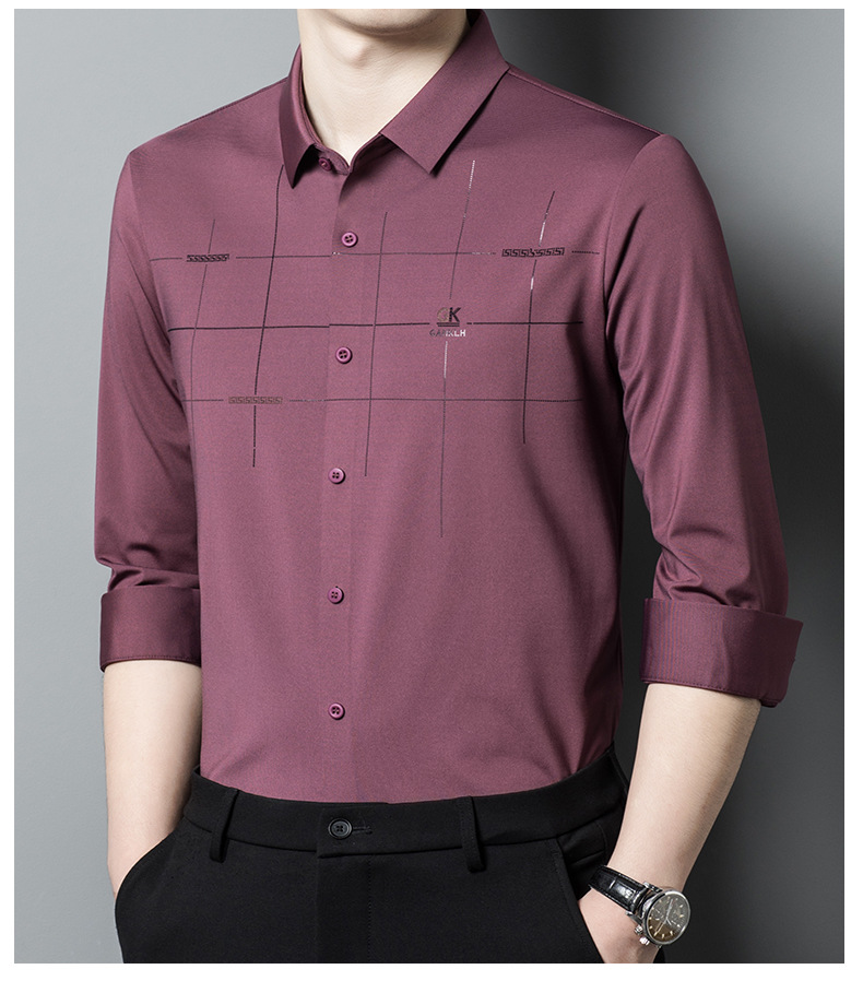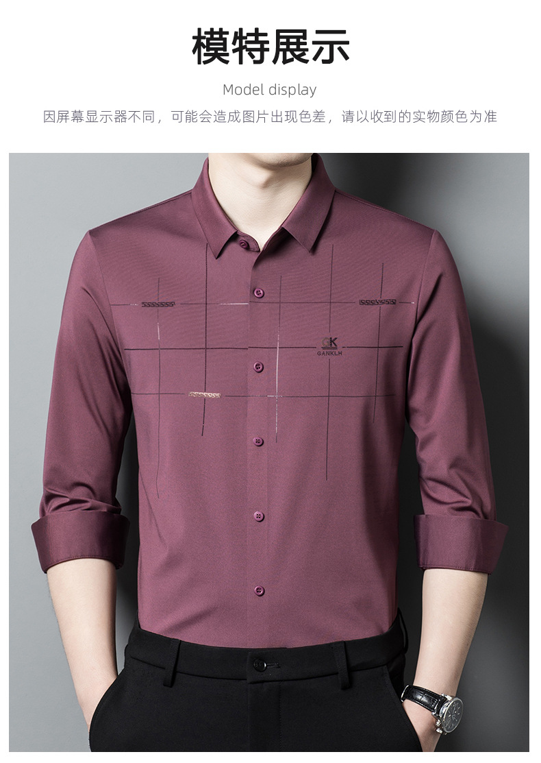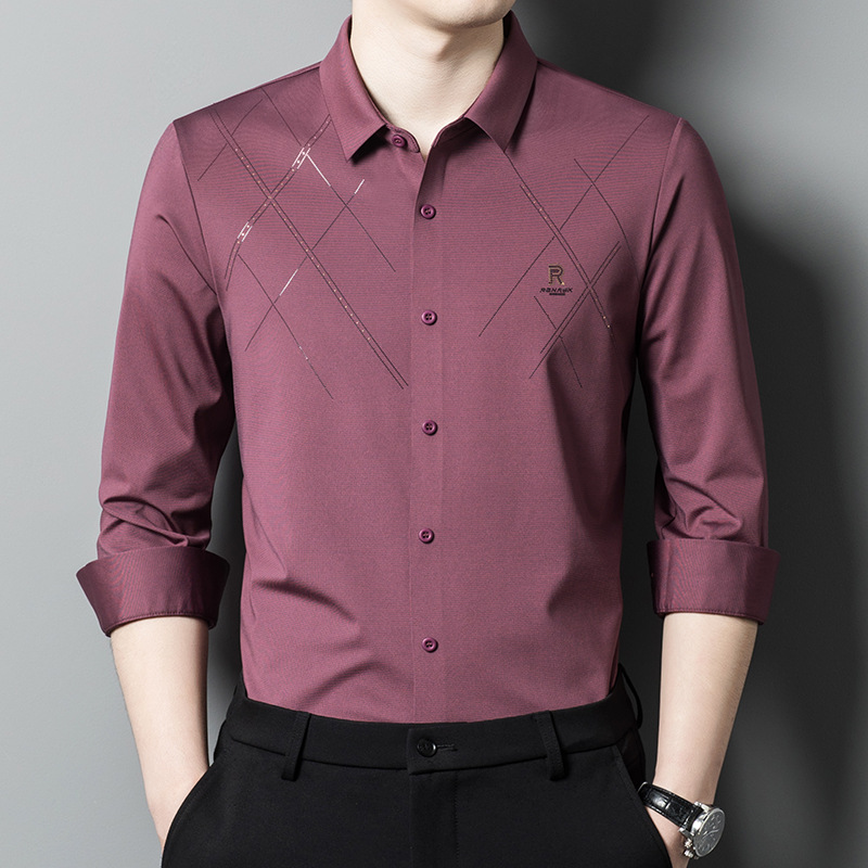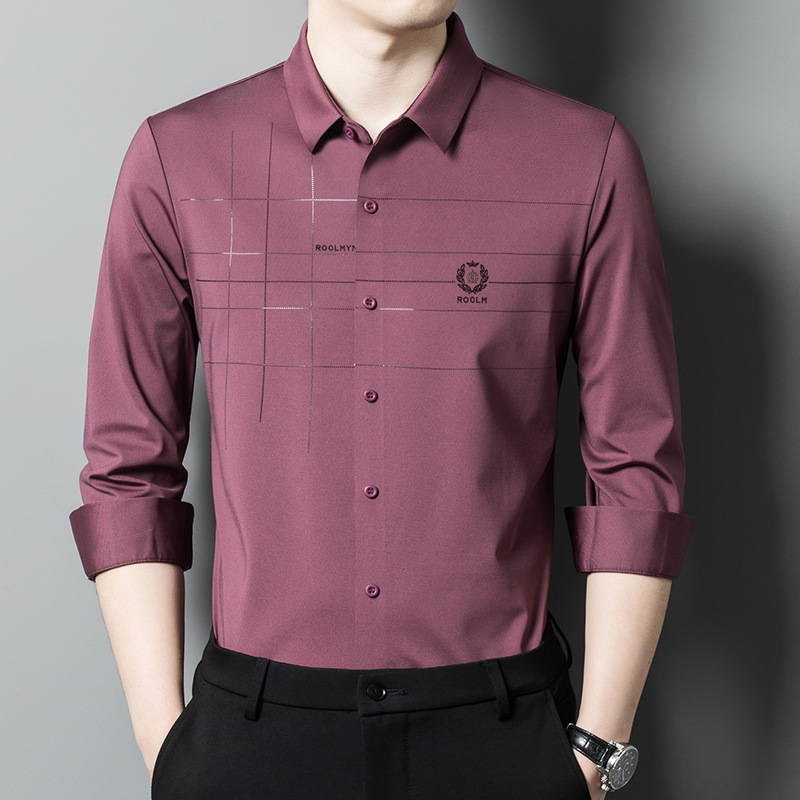 남자의 추적없는 셔츠 긴팔 가을 얇은 버건디 셔츠 중년 아빠의 웨딩 원피스