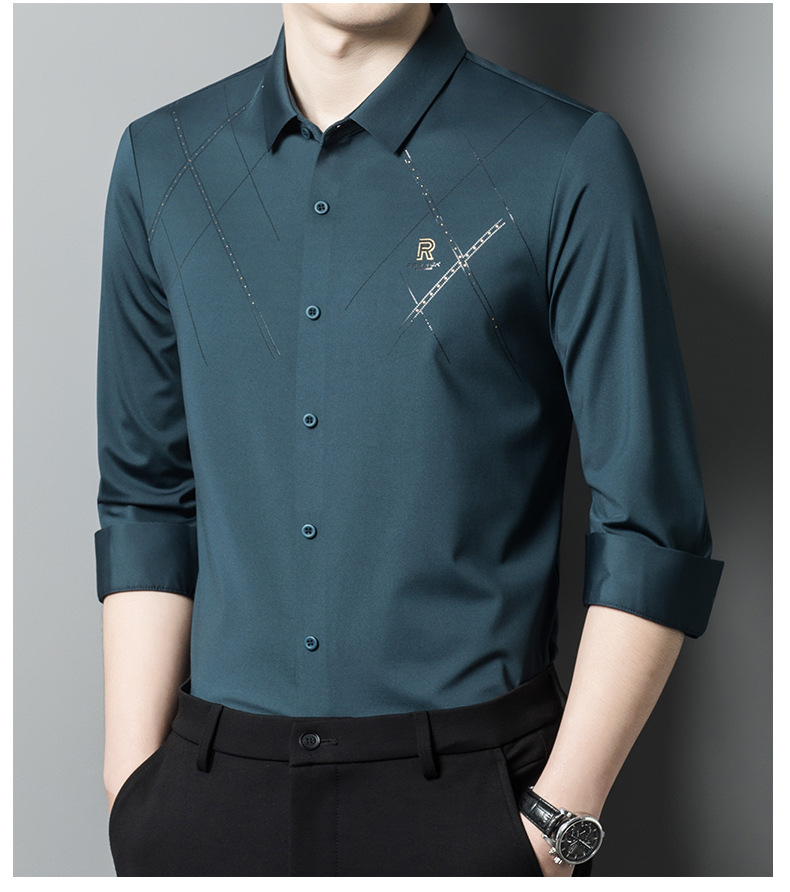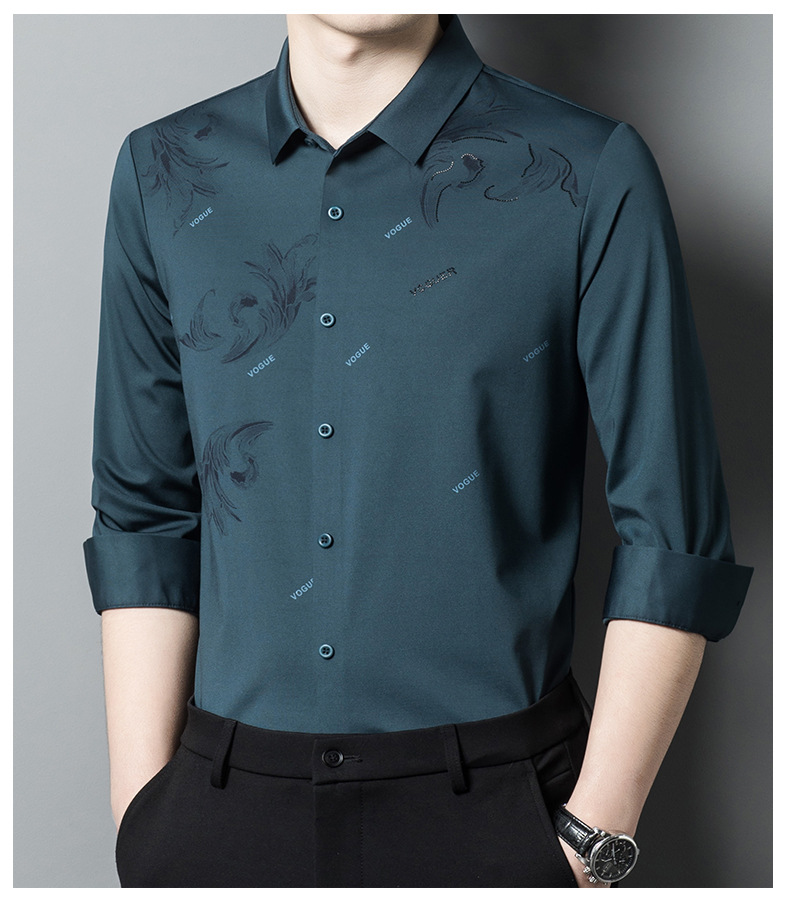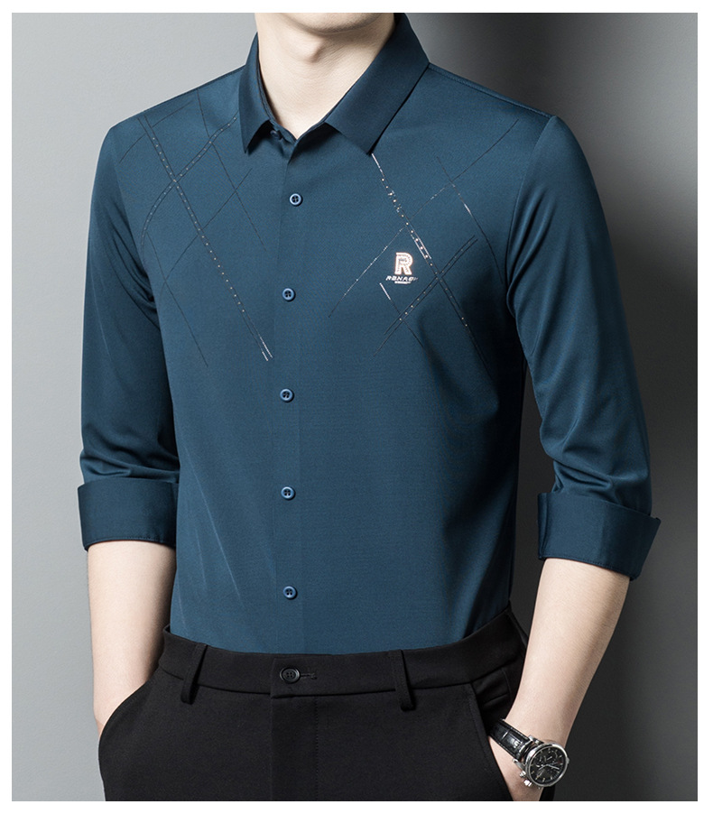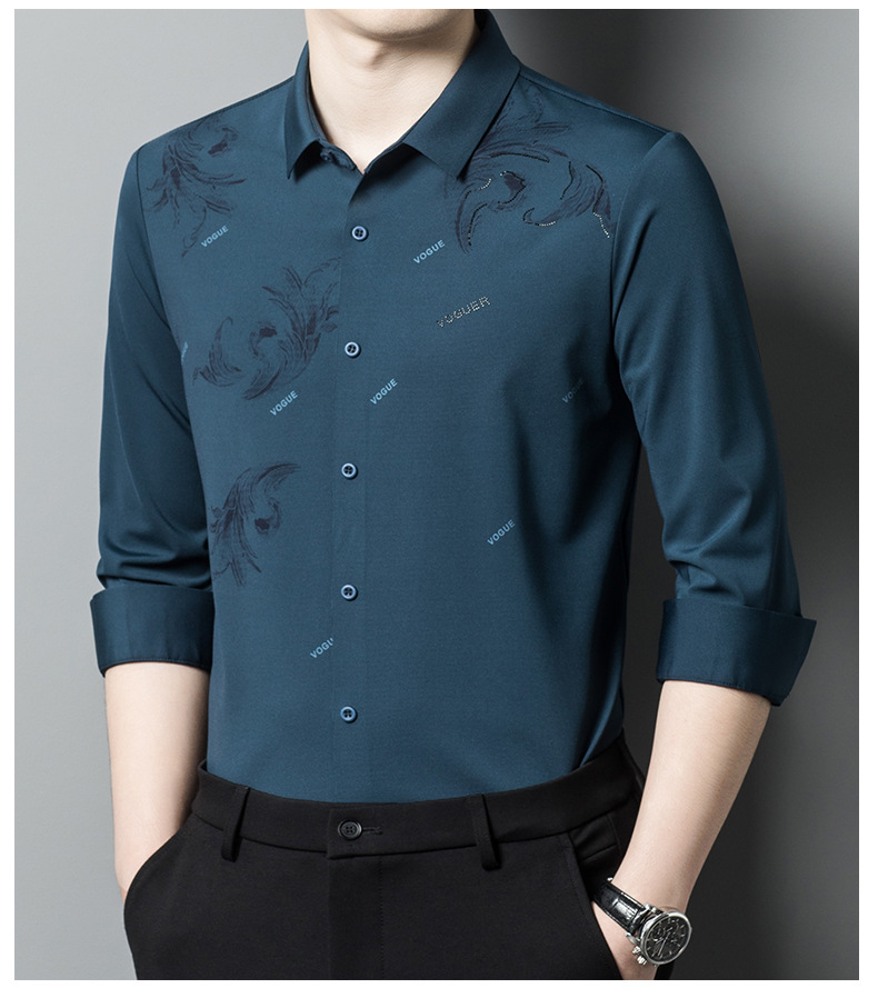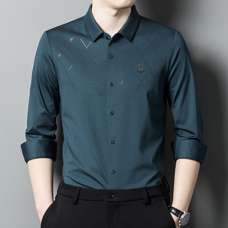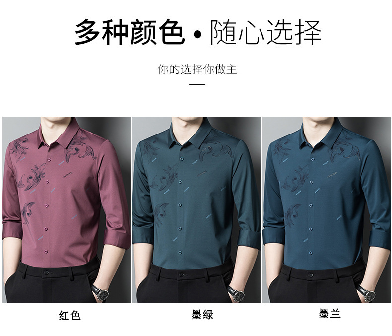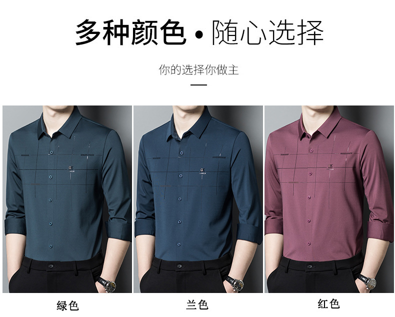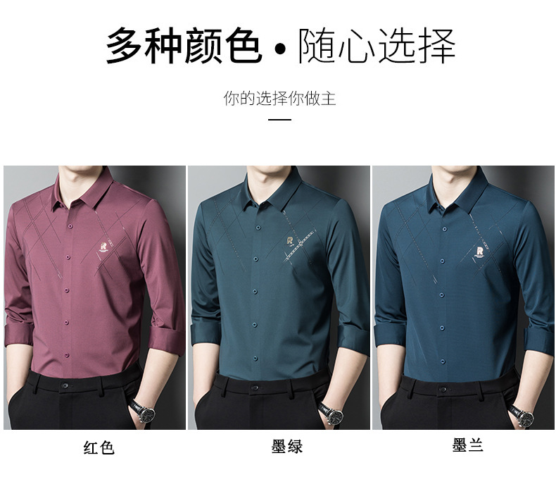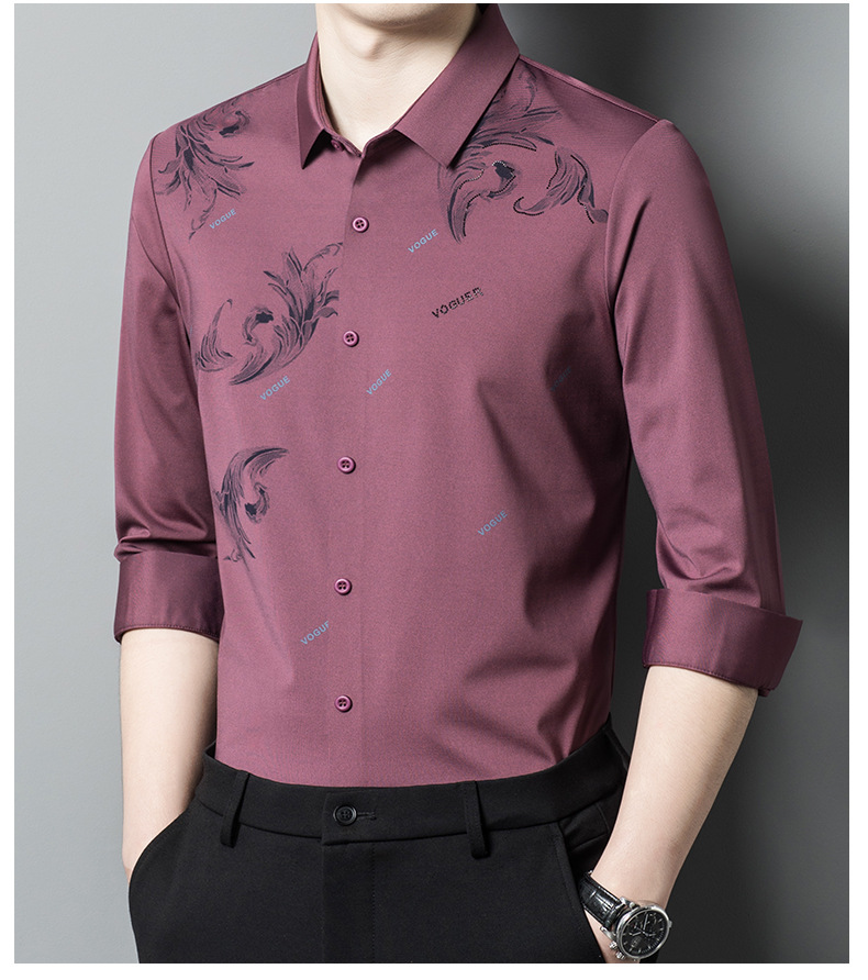 남자의 추적없는 셔츠 긴팔 가을 얇은 버건디 셔츠 중년 아빠의 웨딩 원피스
