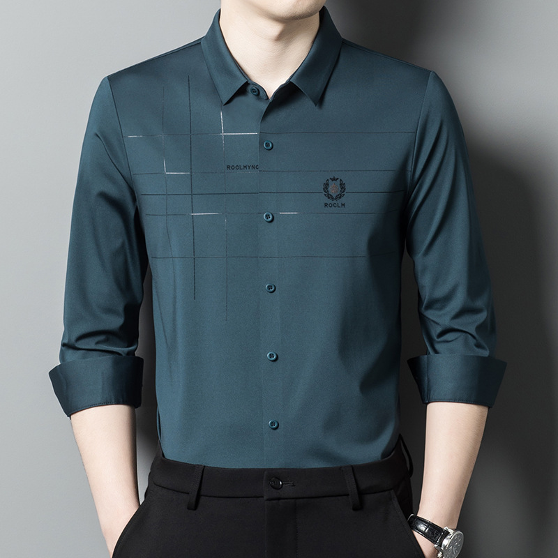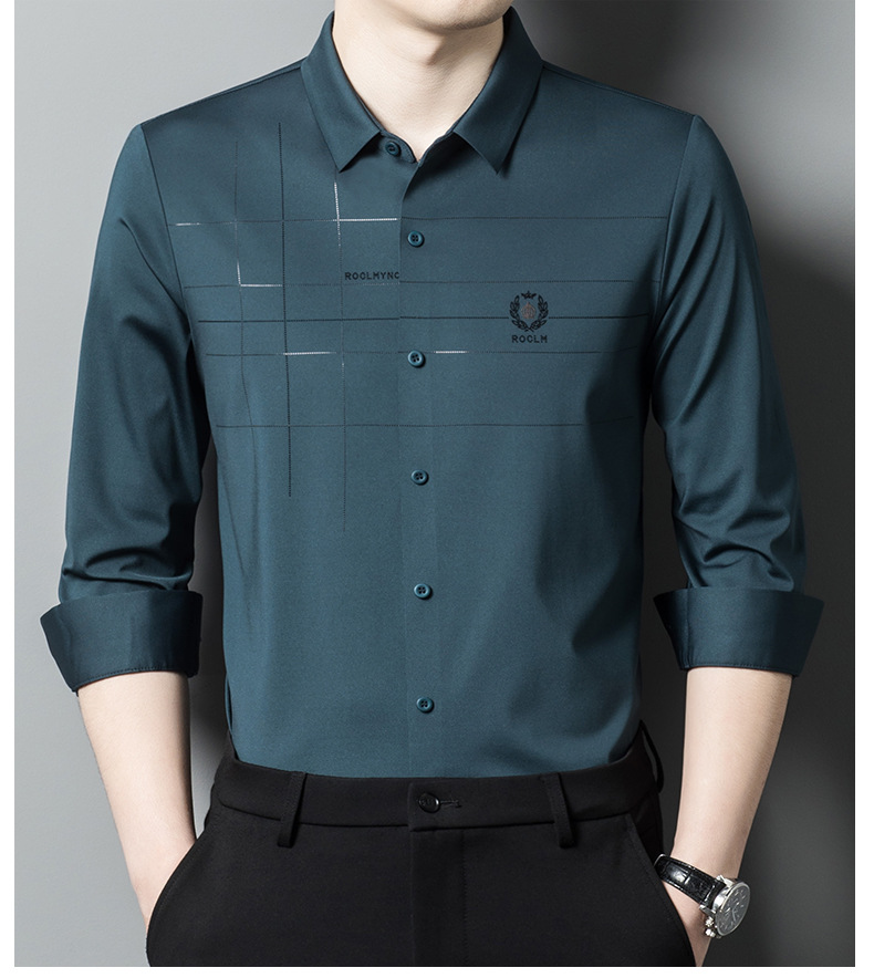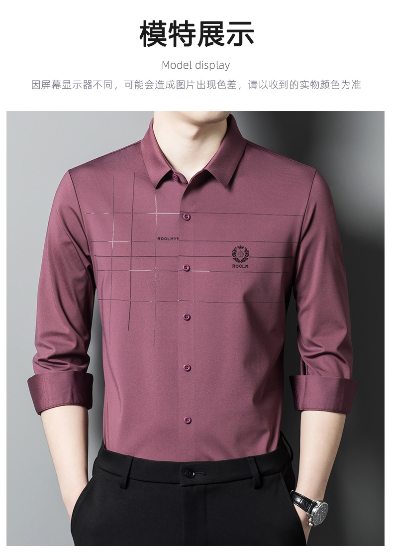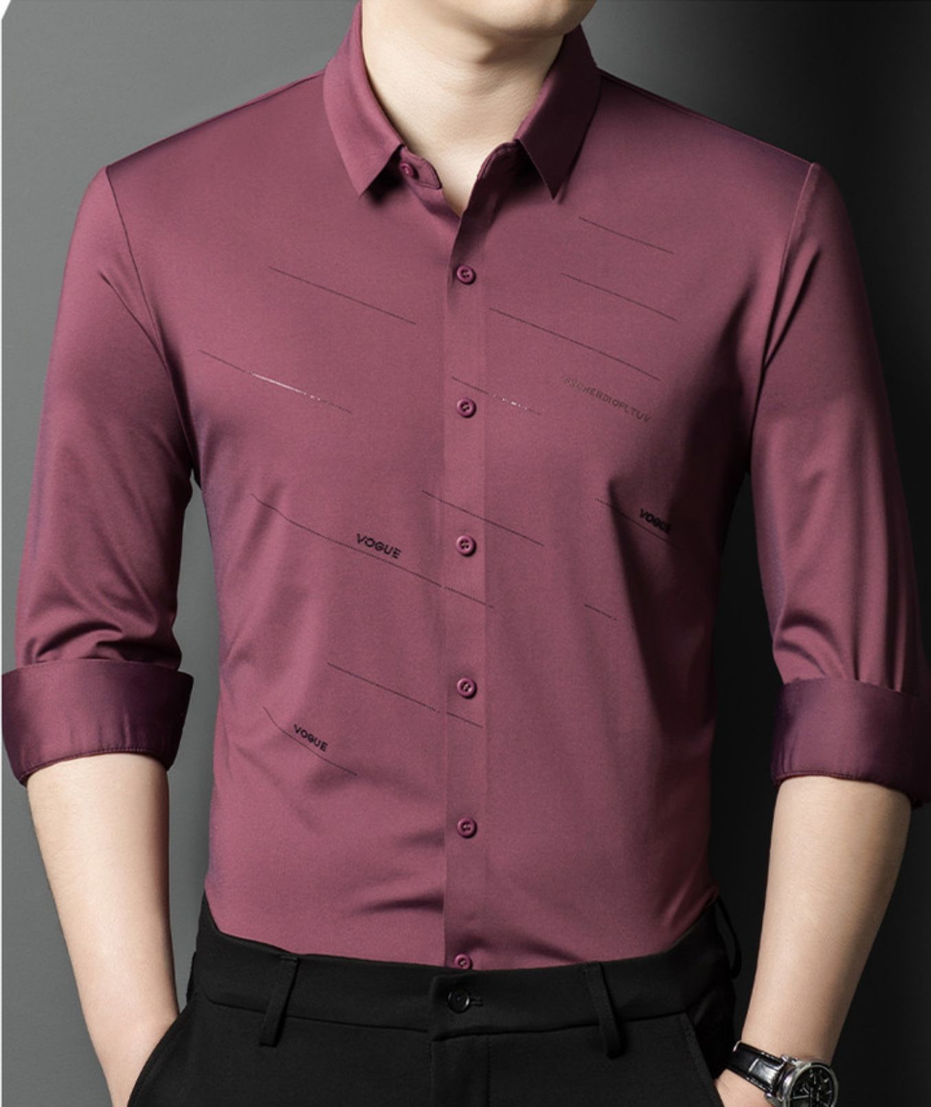 남자의 추적없는 셔츠 긴팔 가을 얇은 버건디 셔츠 중년 아빠의 웨딩 원피스스토어 가기