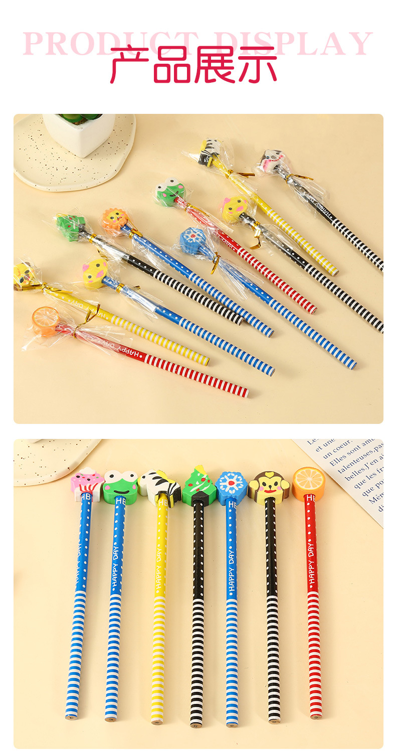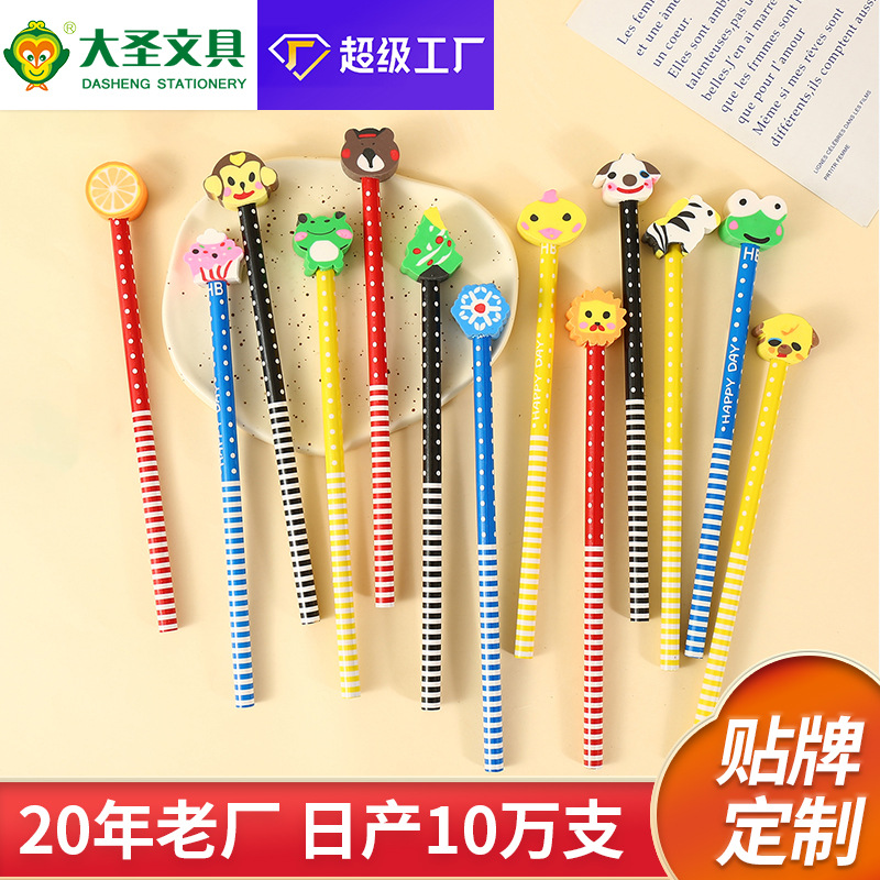 만화 귀여운 연필 창조적 인 고무 머리 라운드로드 로그 연필 초등학교상 어린이 창작 문구 도매