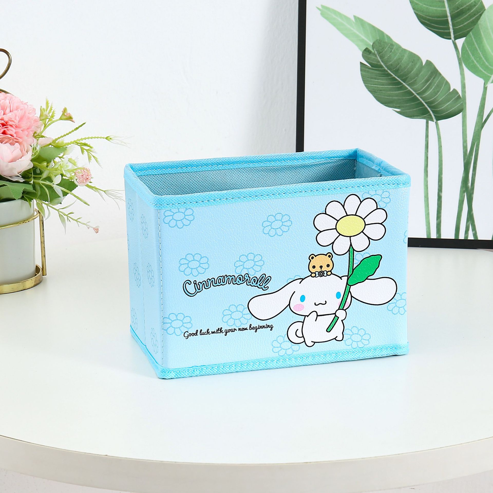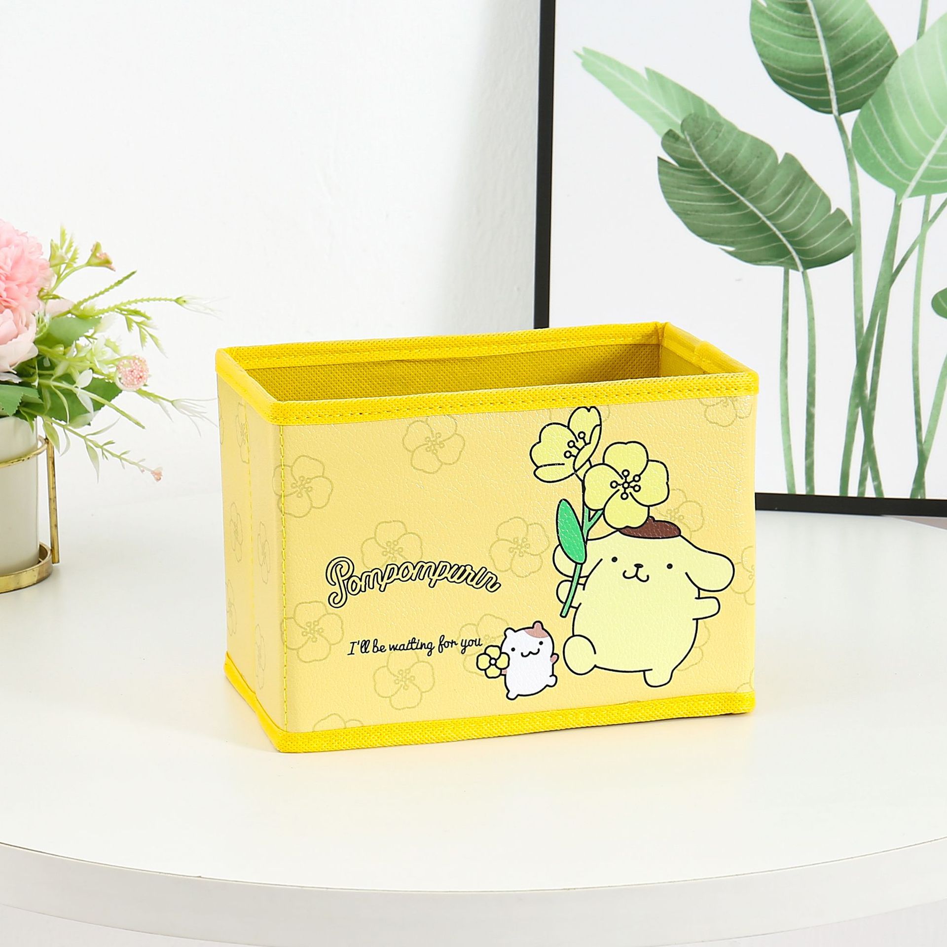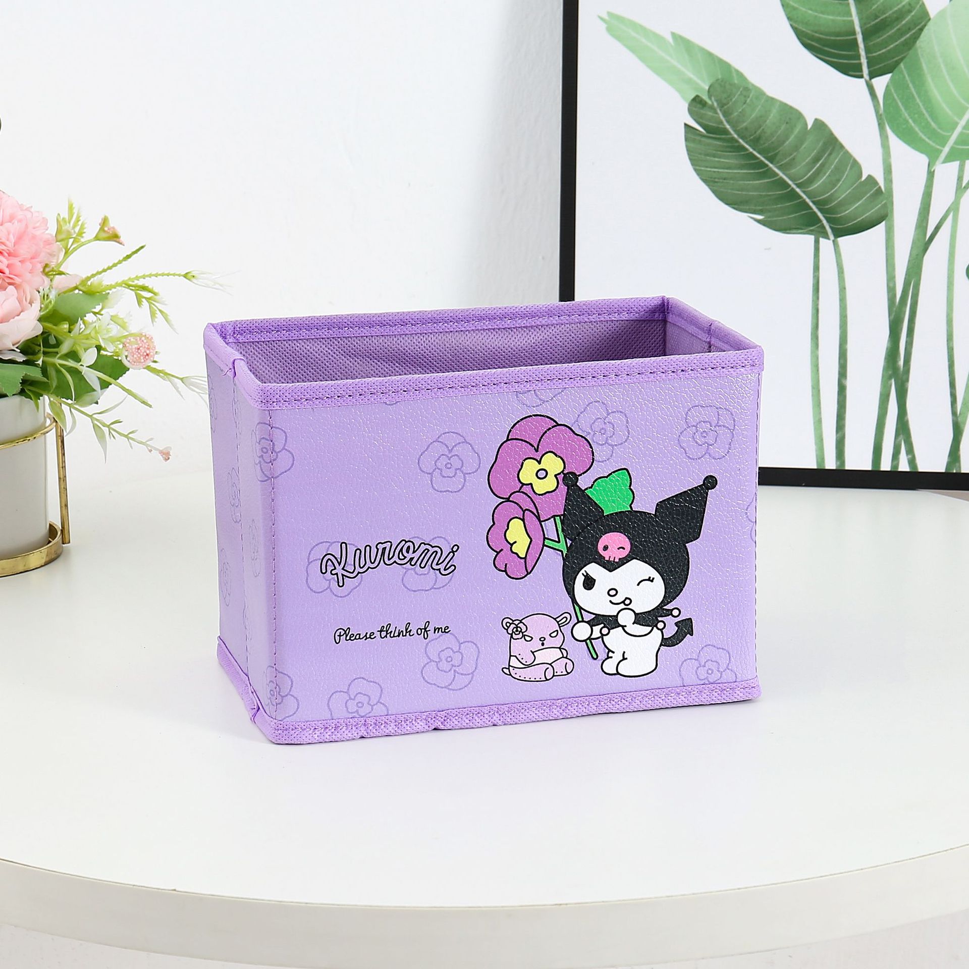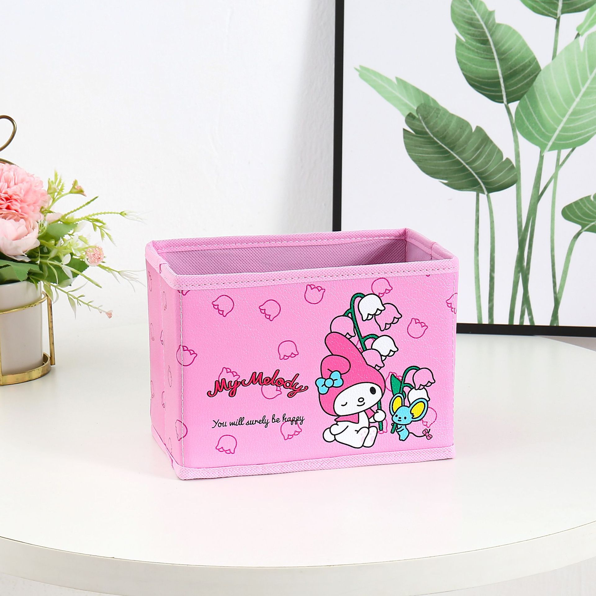 만화 꽃 지점 시리즈 PU 데스크탑 잡화 작은 저장 상자 사무실 침실 옷장 접이식 보관 상자