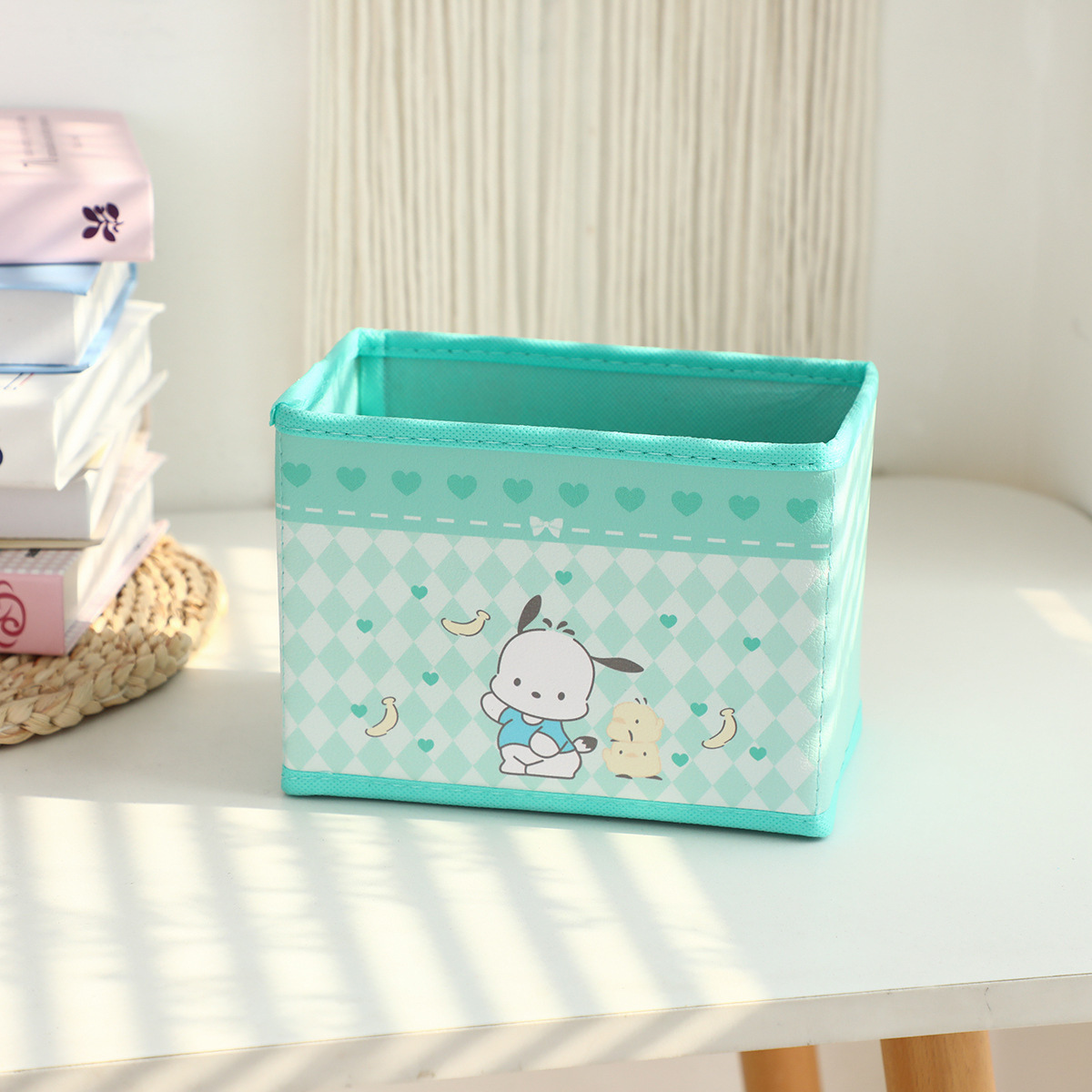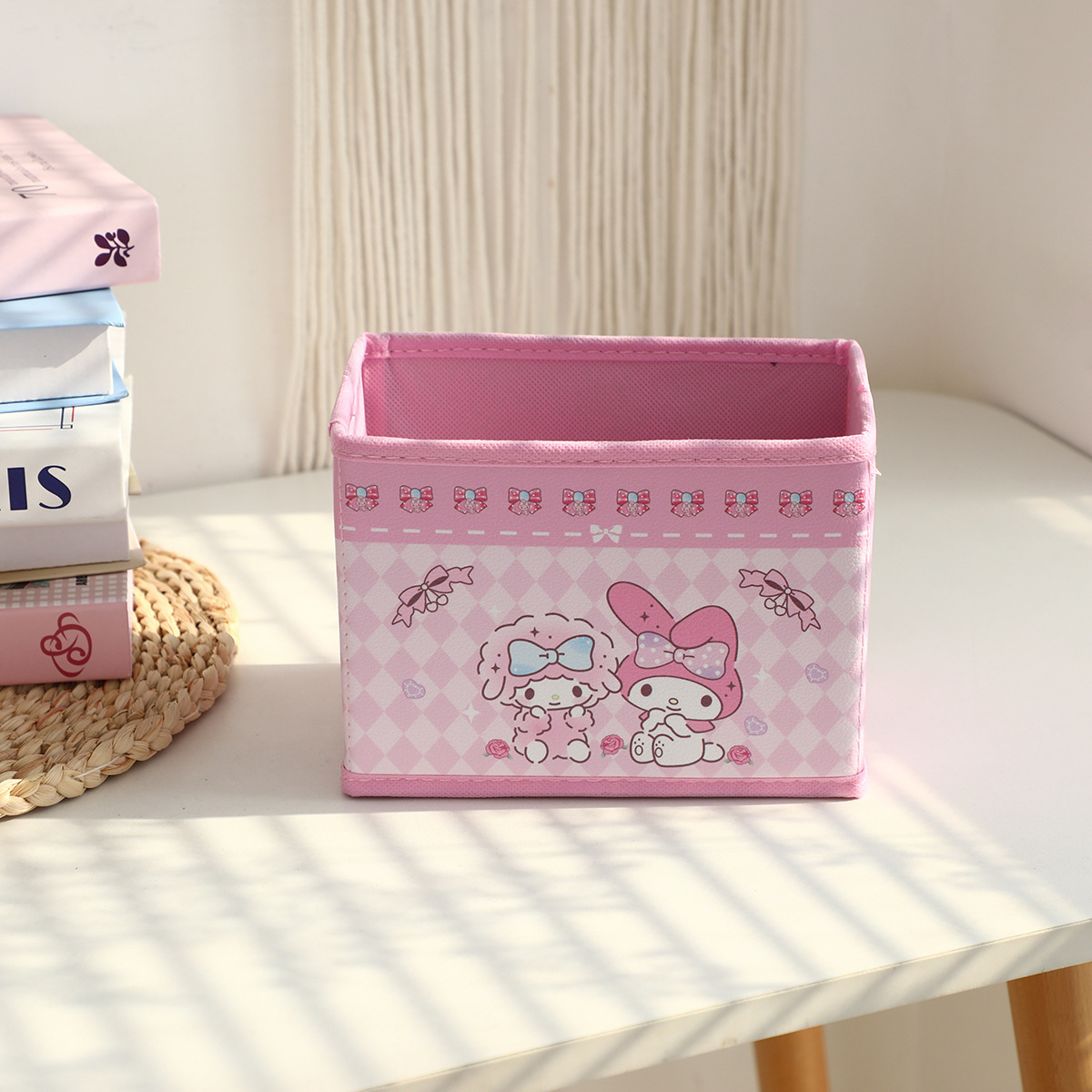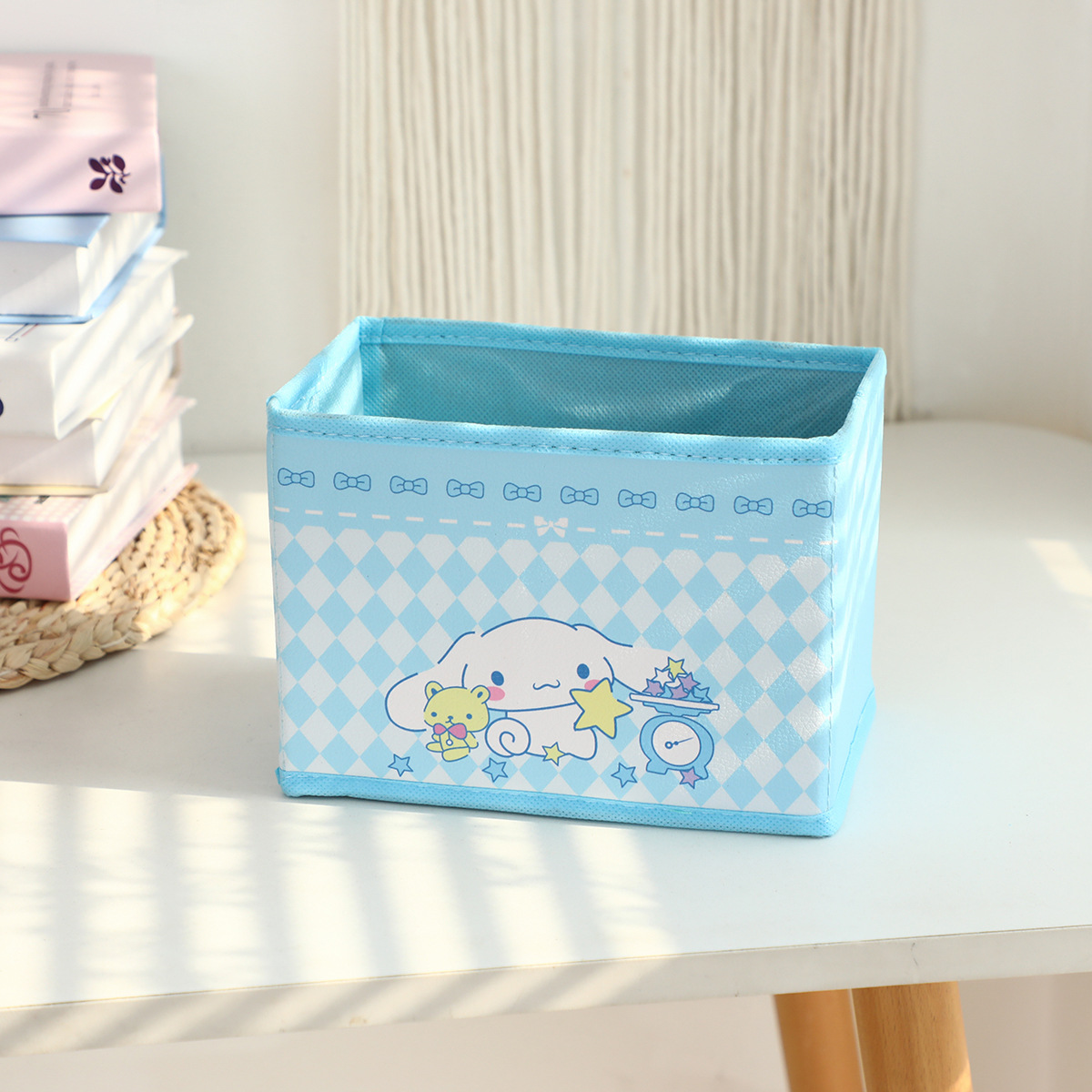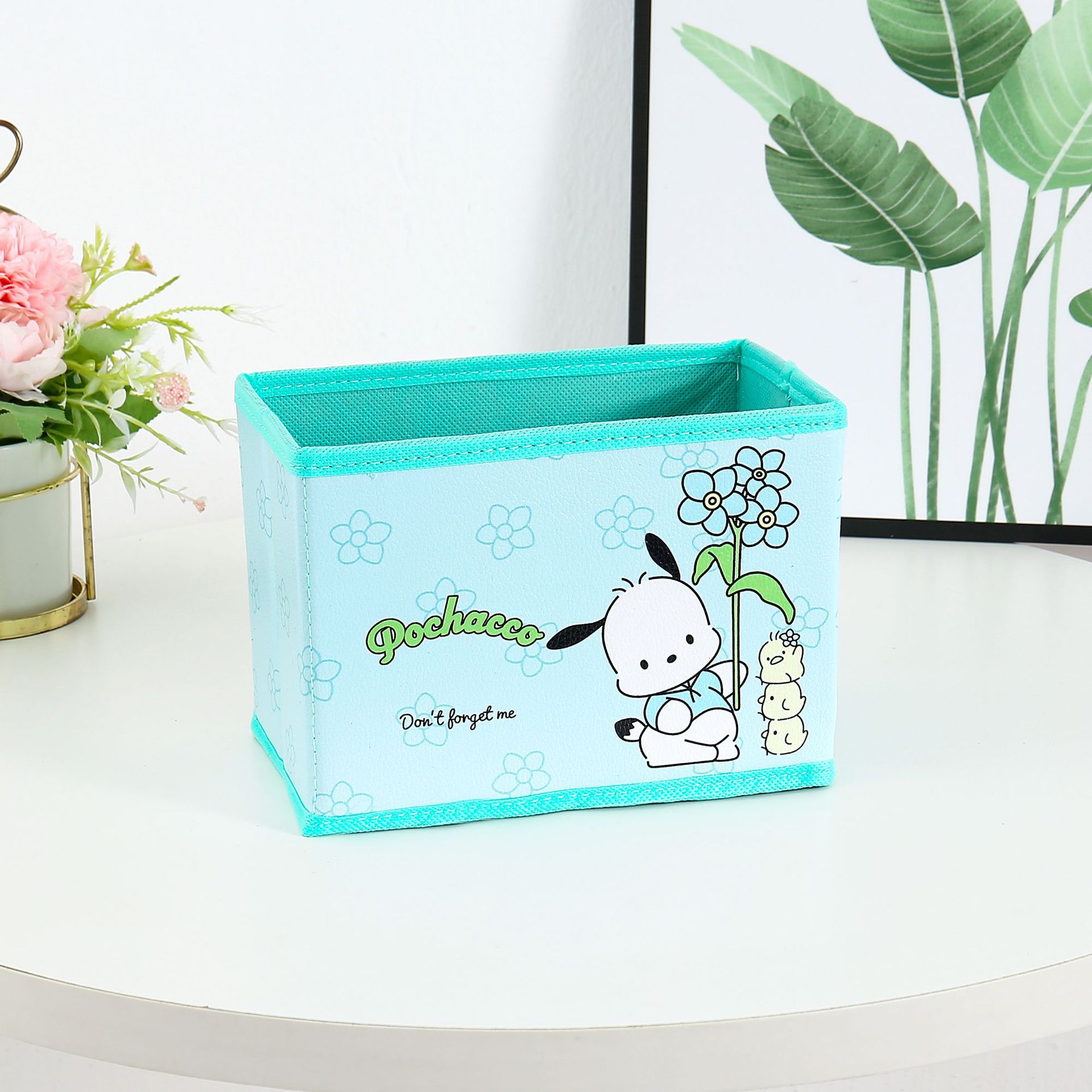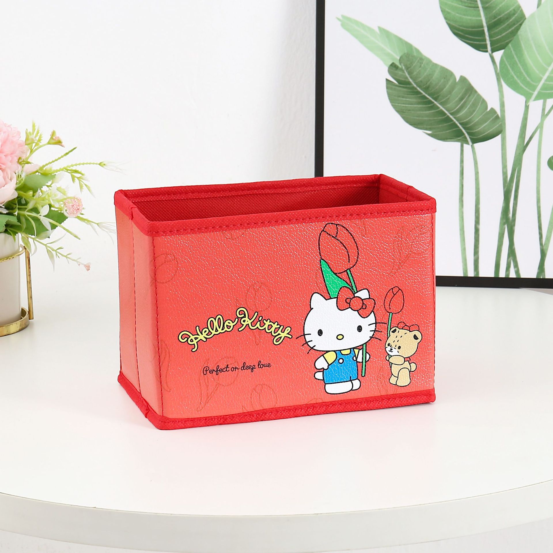 만화 꽃 지점 시리즈 PU 데스크탑 잡화 작은 저장 상자 사무실 침실 옷장 접이식 보관 상자