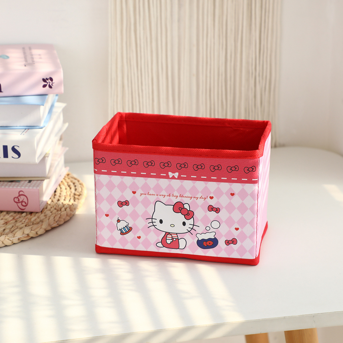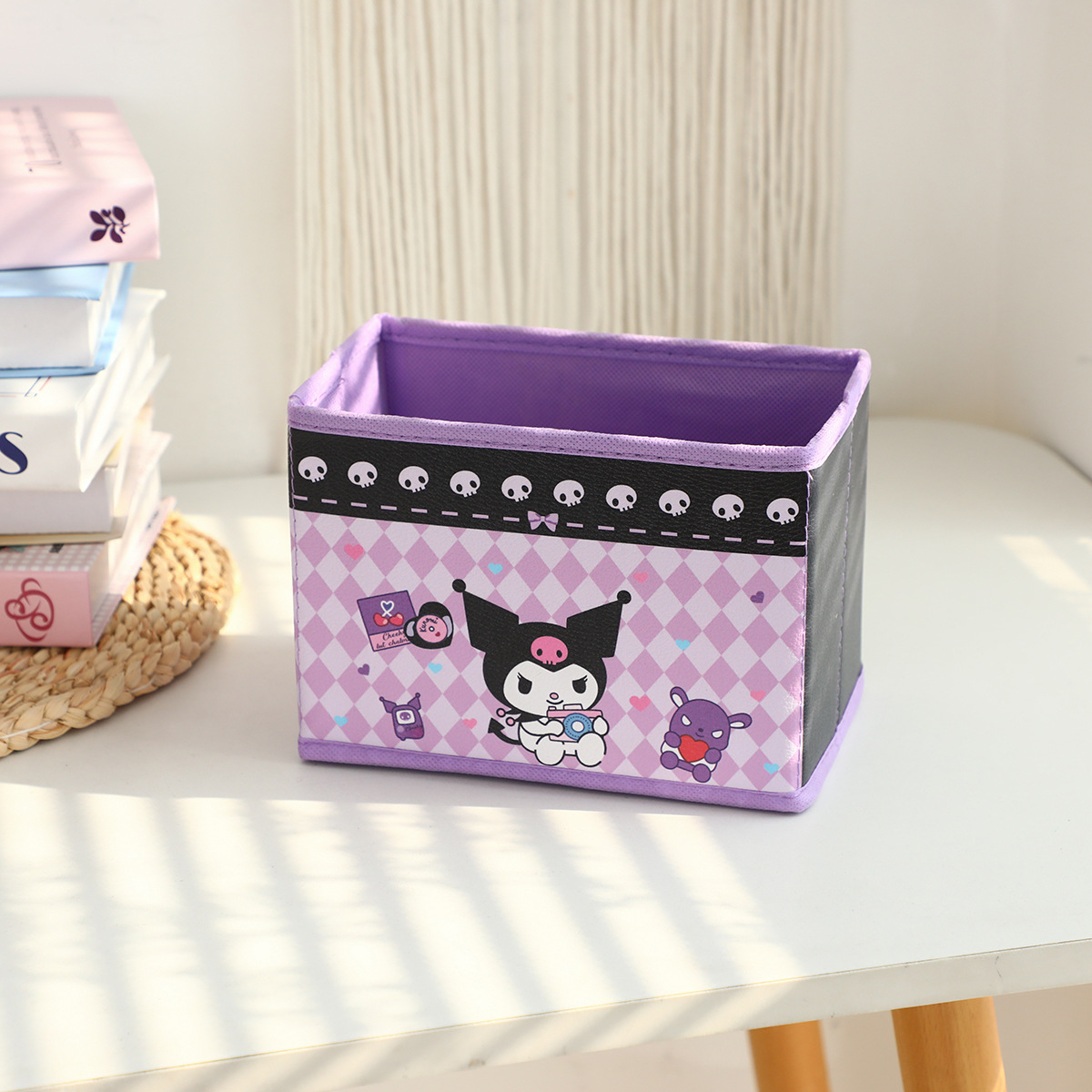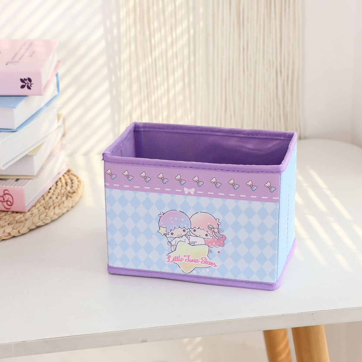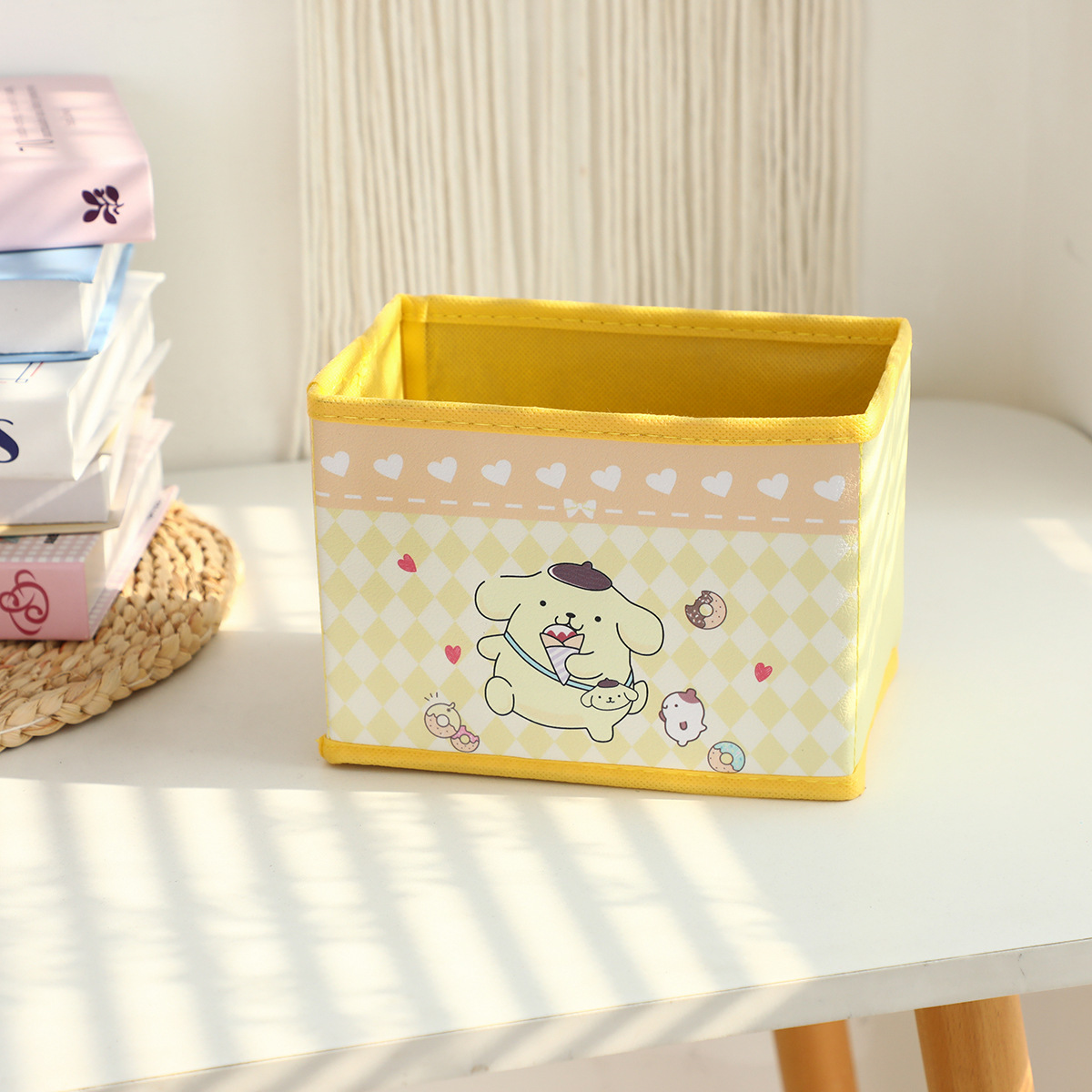 만화 꽃 지점 시리즈 PU 데스크탑 잡화 작은 저장 상자 사무실 침실 옷장 접이식 보관 상자