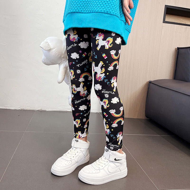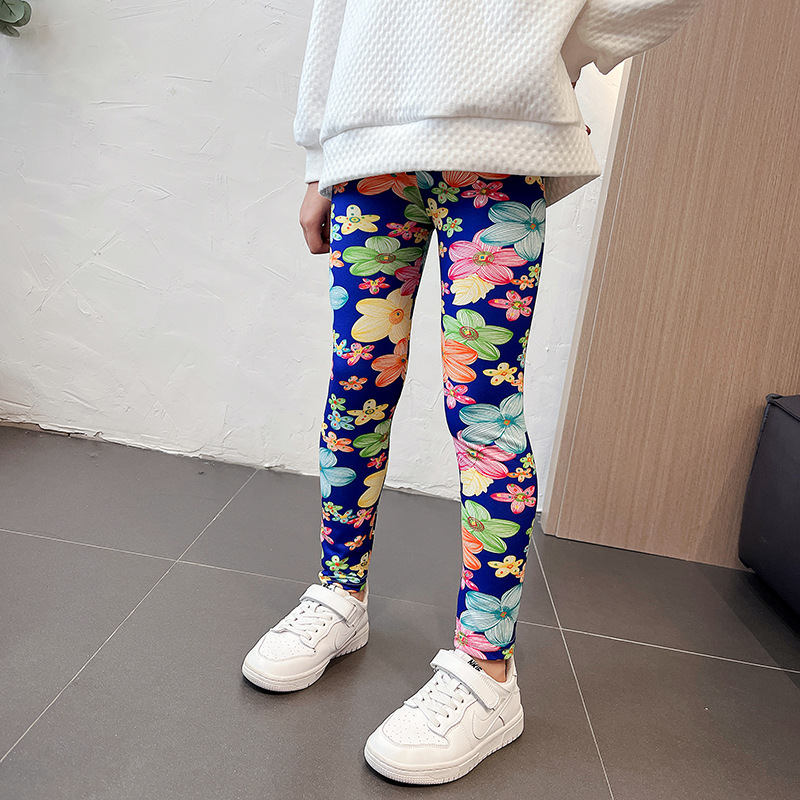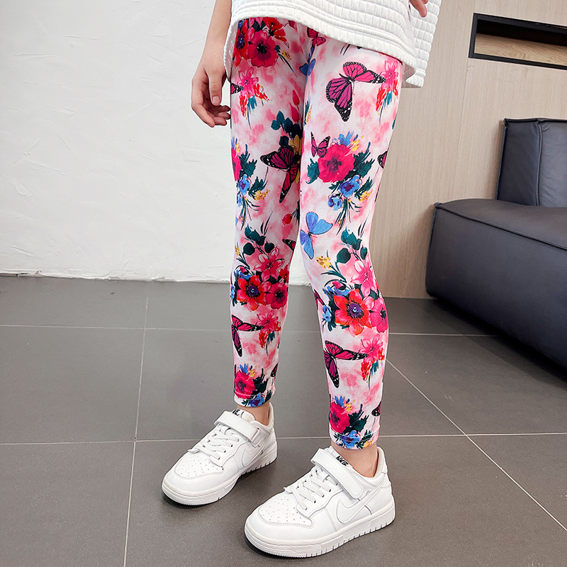 가을과 여름 새로운 한국식 크롭 바지 어린이 3-11 세 인쇄 컬러 소녀 레깅스 얇은 외부 국경스토어 가기