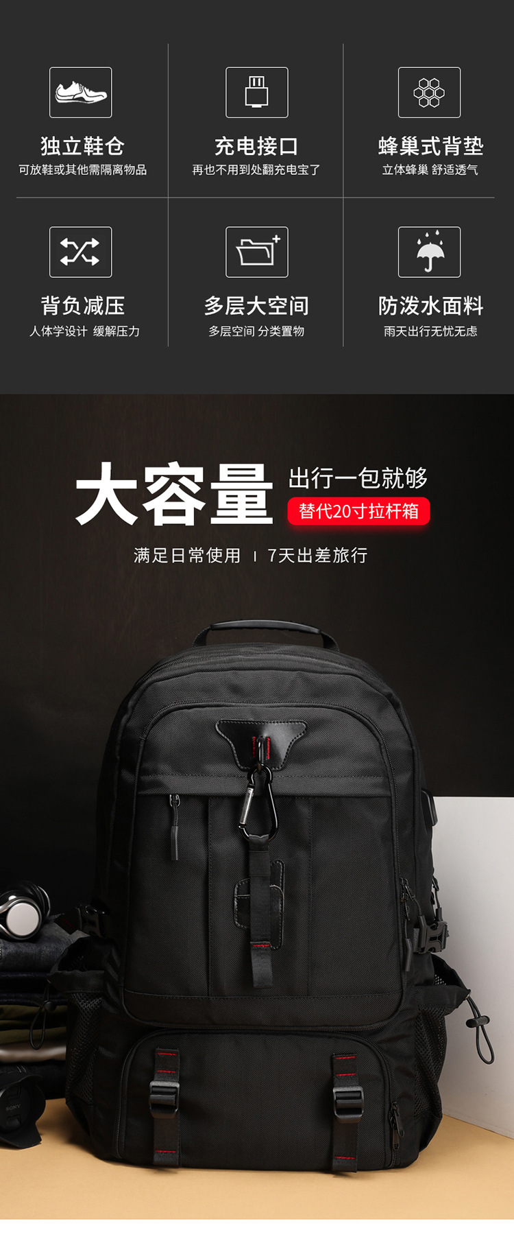 여행용 가방, 대용량 여성용 여행가방, 경량 책가방, 여행용 다기능 가방, 백팩, 남성용 가방