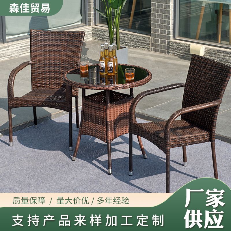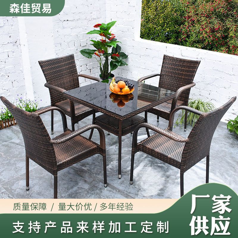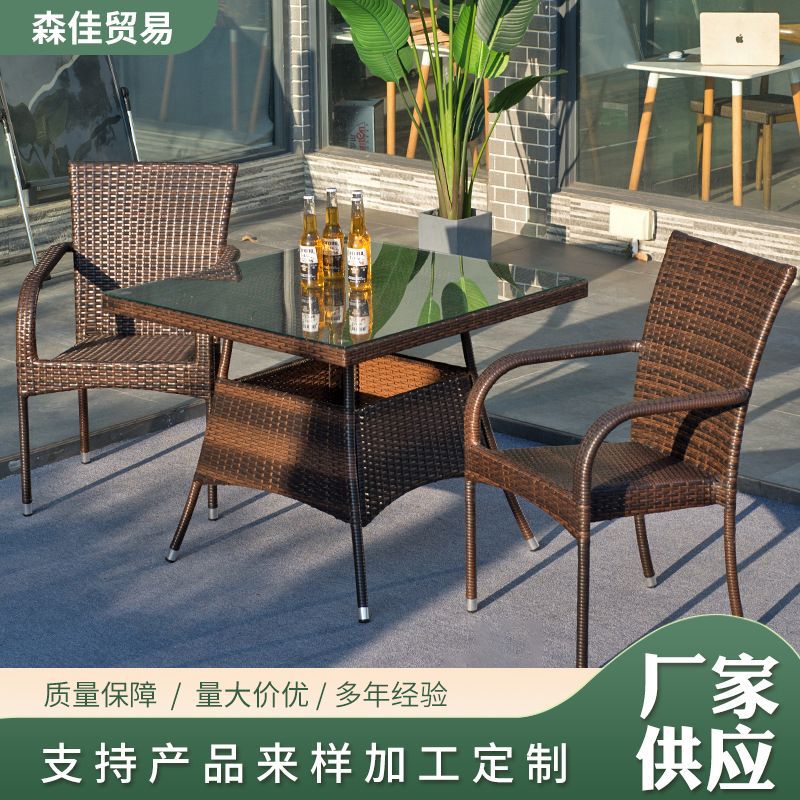 새로운 야외 카페 테이블과 의자 조합 정원 식탁 등나무 의자 세트 긴 테이블 사각 테이블 원형 테이블 조합 등나무 의자