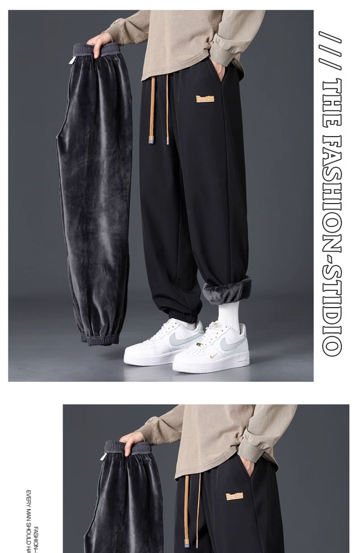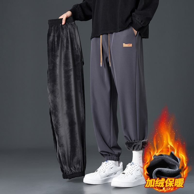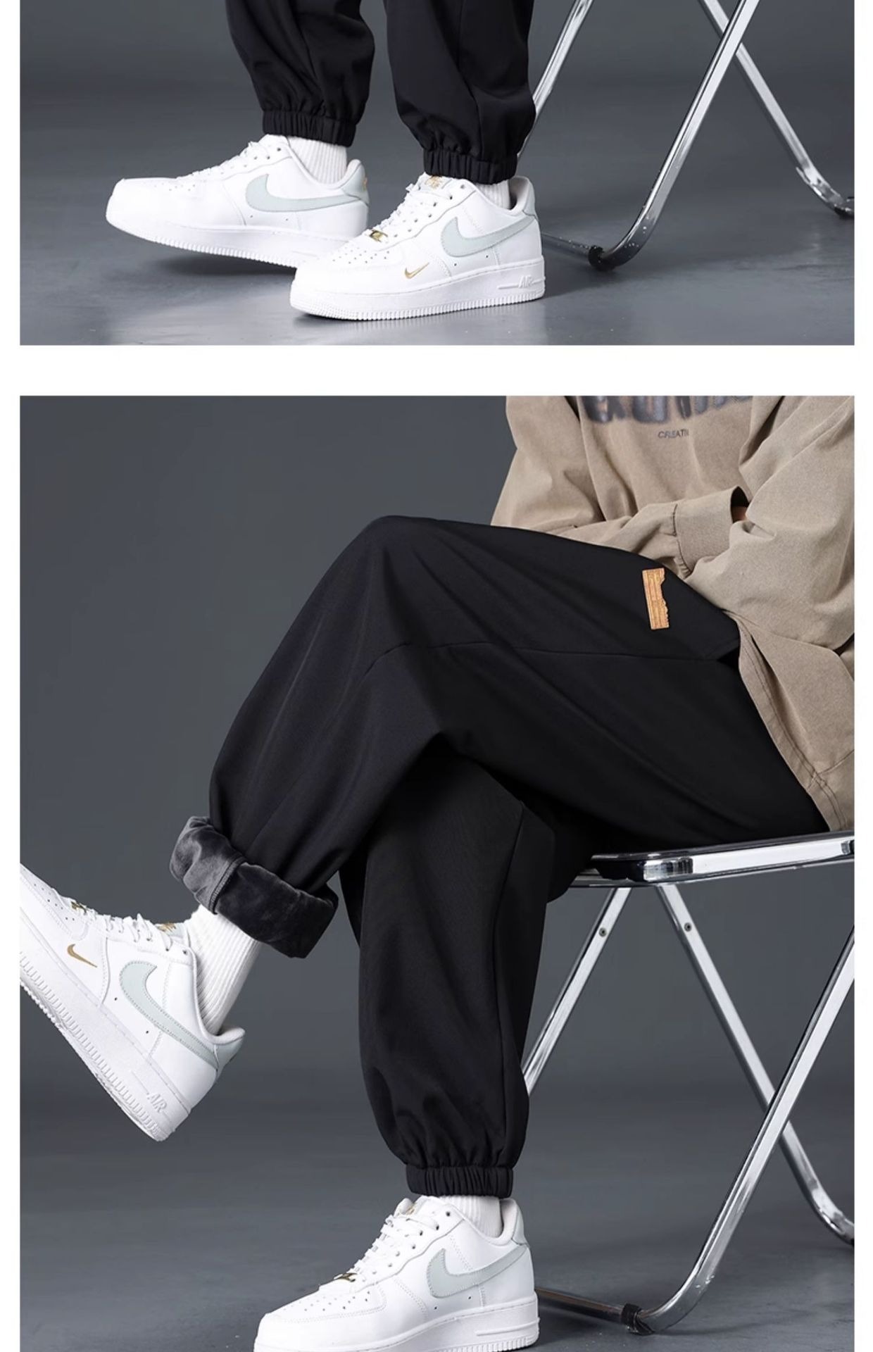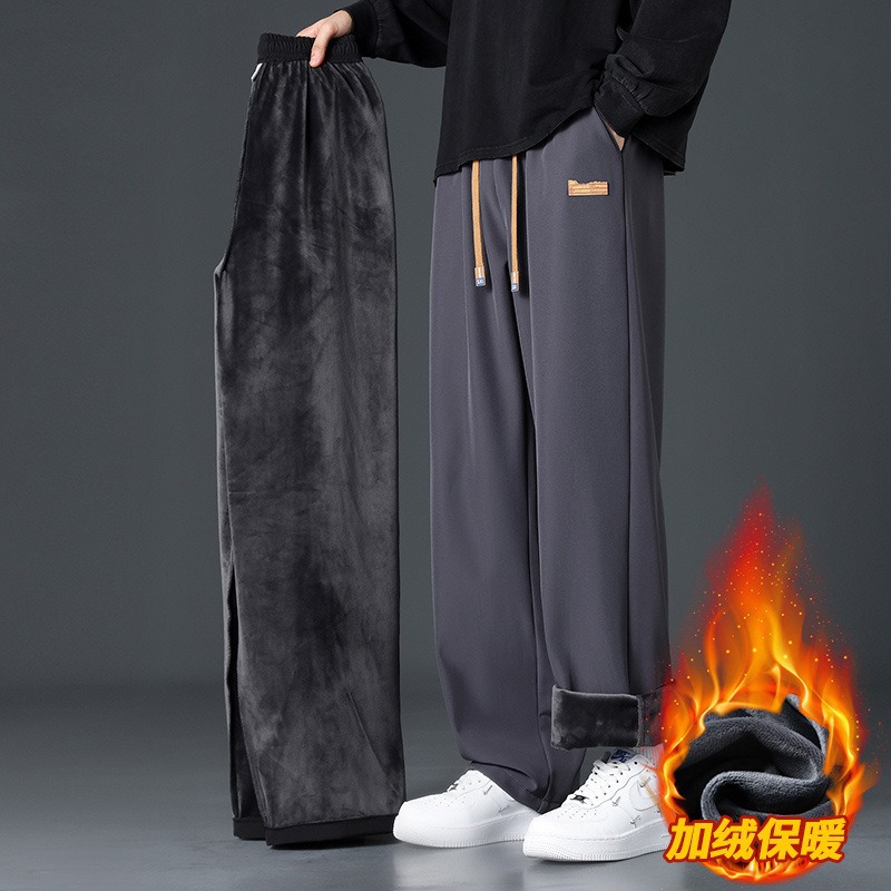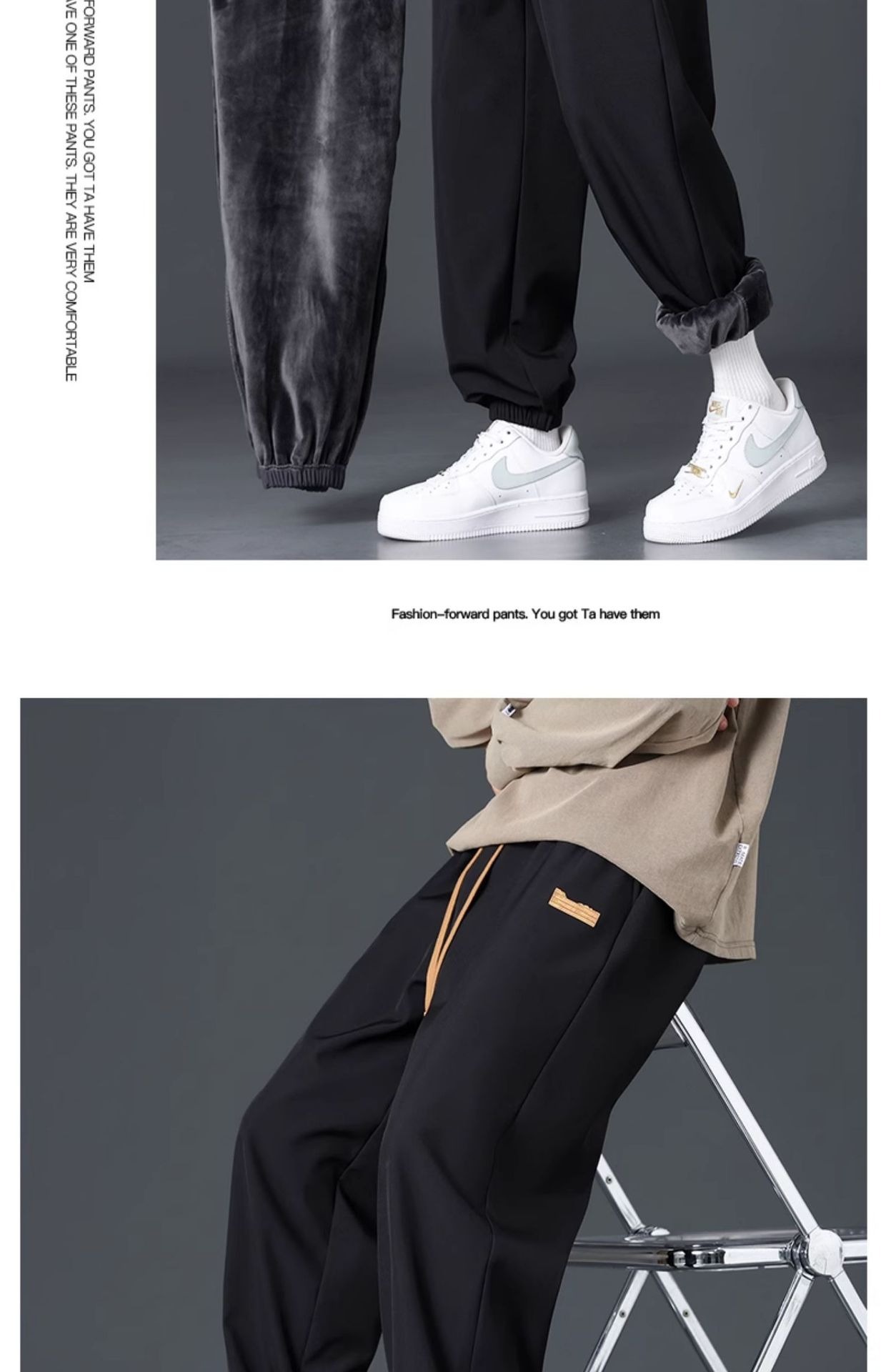 남성용 기모 바지 가을 겨울 2025 신상 면바지 트렌디 브랜드 스포츠 조거 팬츠 남성 캐주얼 루즈핏 스트레이트 팬츠