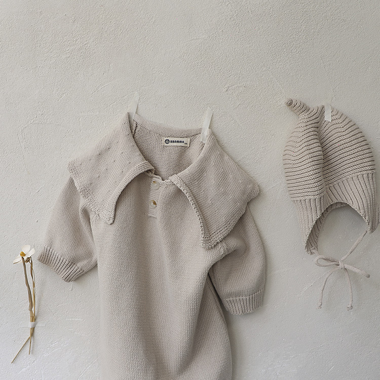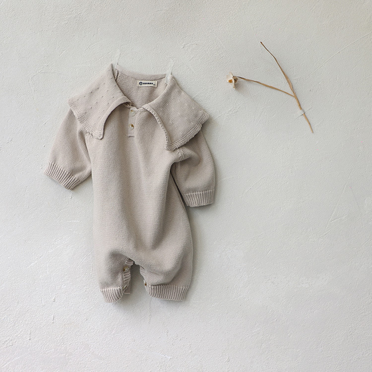 남성과 여성을 위한 아기 가을 스웨터 점프수트, 큰 라펠 면 니트 스웨터, 아기 긴 크롤링 슈트