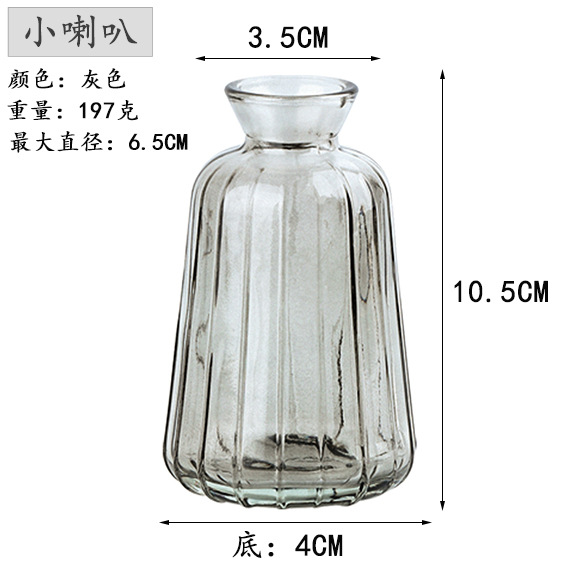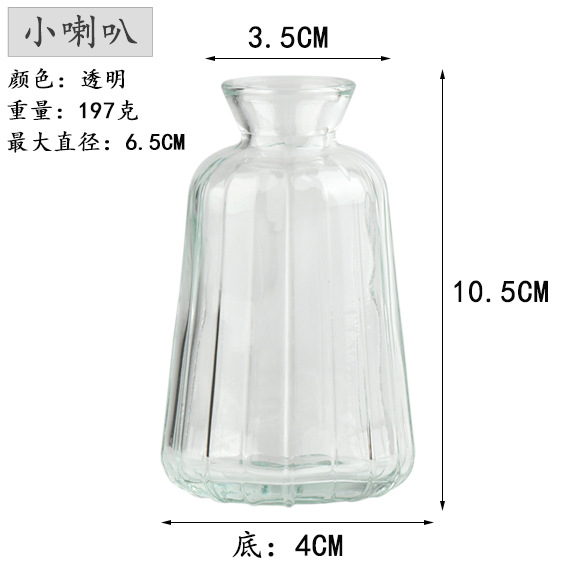아마존 투명 미니 유리 꽃병 색상 작은 입 수직 패턴 수경 꽃 데스크탑 장식 장식품 도매