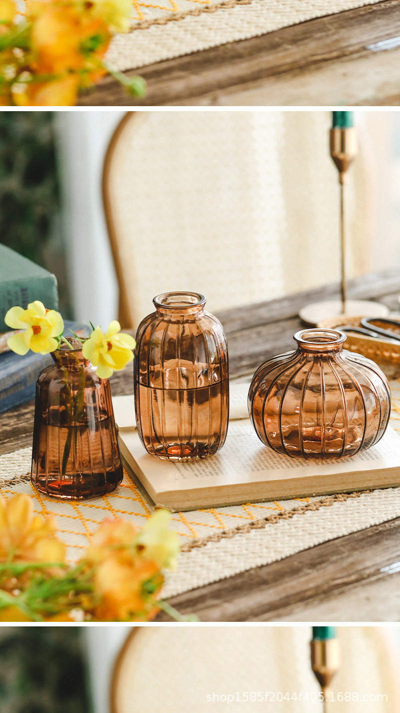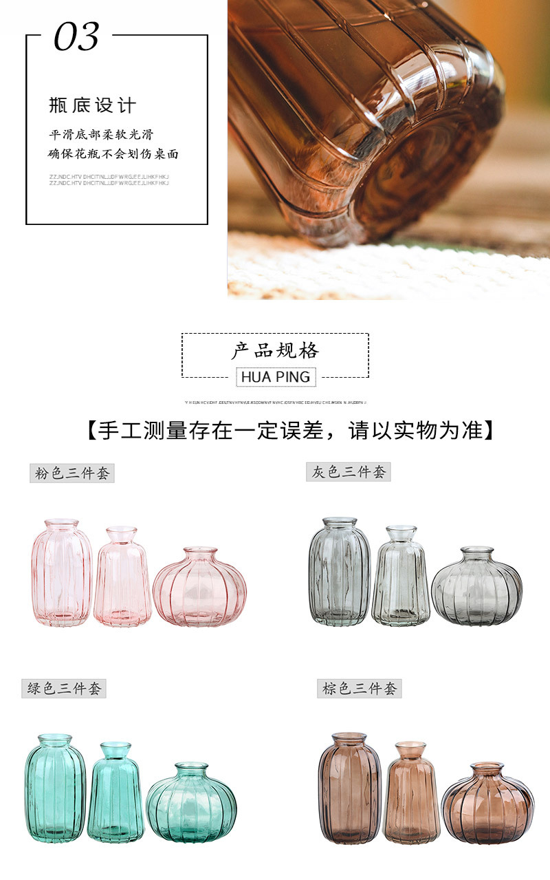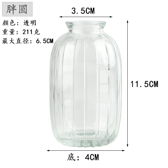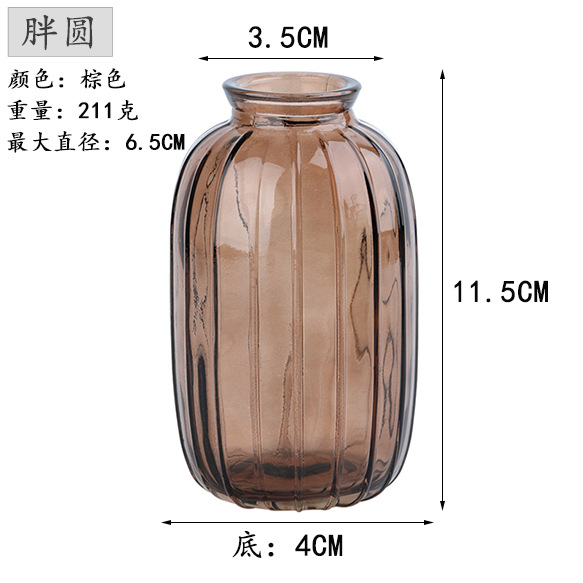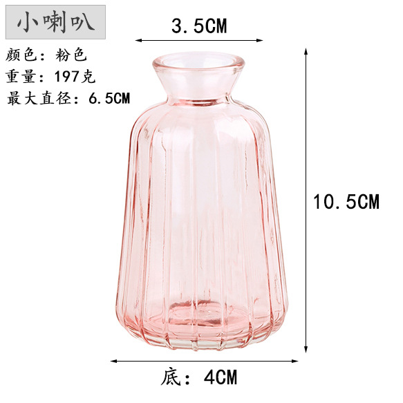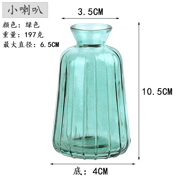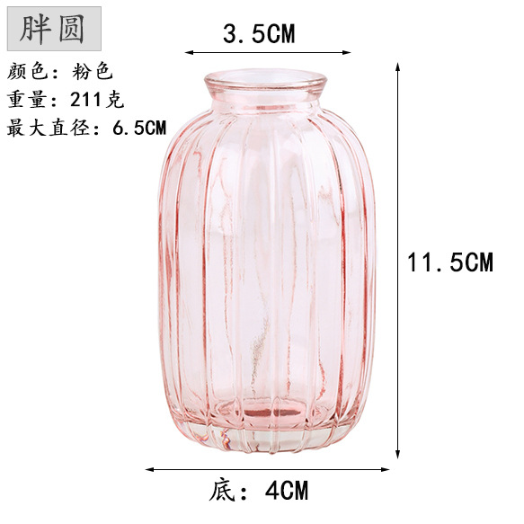 아마존 투명 미니 유리 꽃병 색상 작은 입 수직 패턴 수경 꽃 데스크탑 장식 장식품 도매스토어 가기