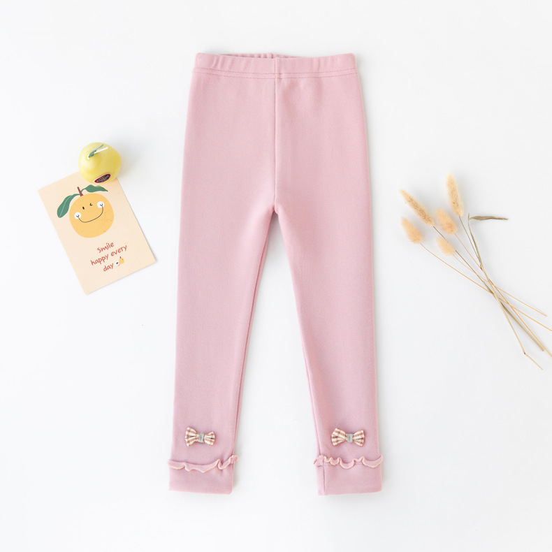봄가을 여아 레깅스, 한국 스타일의 작은 향수풍 여아 바지, 두꺼운 95% 면 소재 아동 레깅스, 아동 바지