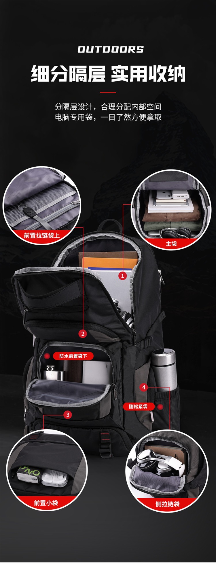 남성용 야외 대용량 백팩 다기능 배낭 단거리 여행 가방 고급 대형 가방