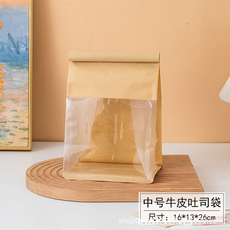 토스트 백 와이어 컬 빵 가방 창 자체 밀봉 웨스트 포인트 가죽 면 종이 가방 450g 토스트 백 로고스토어 가기
