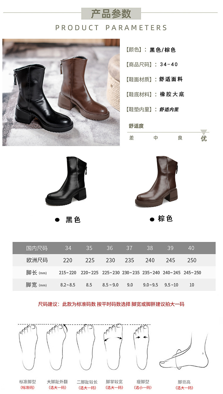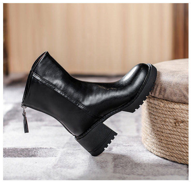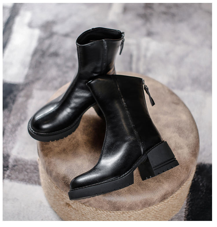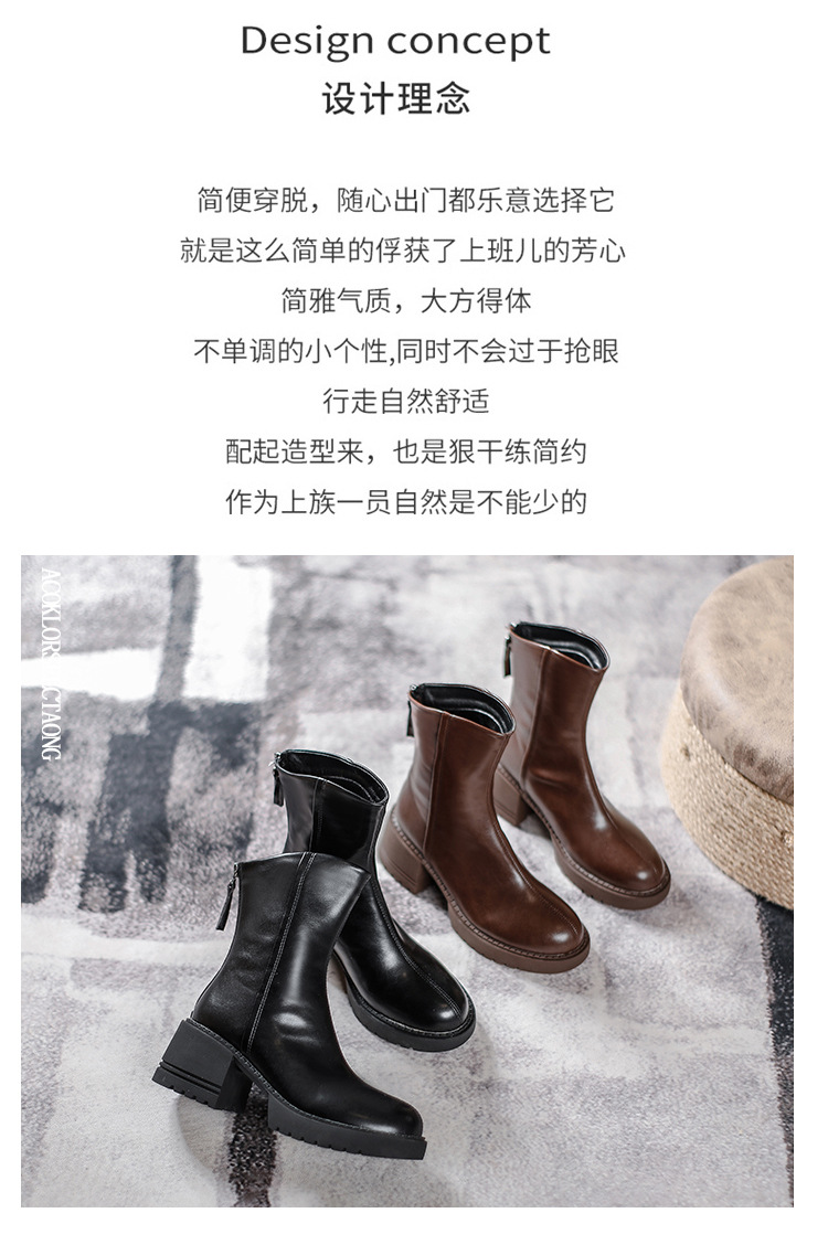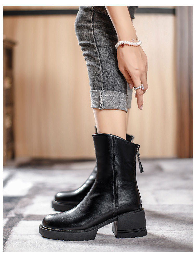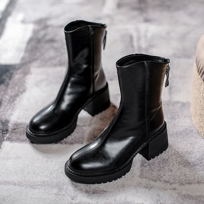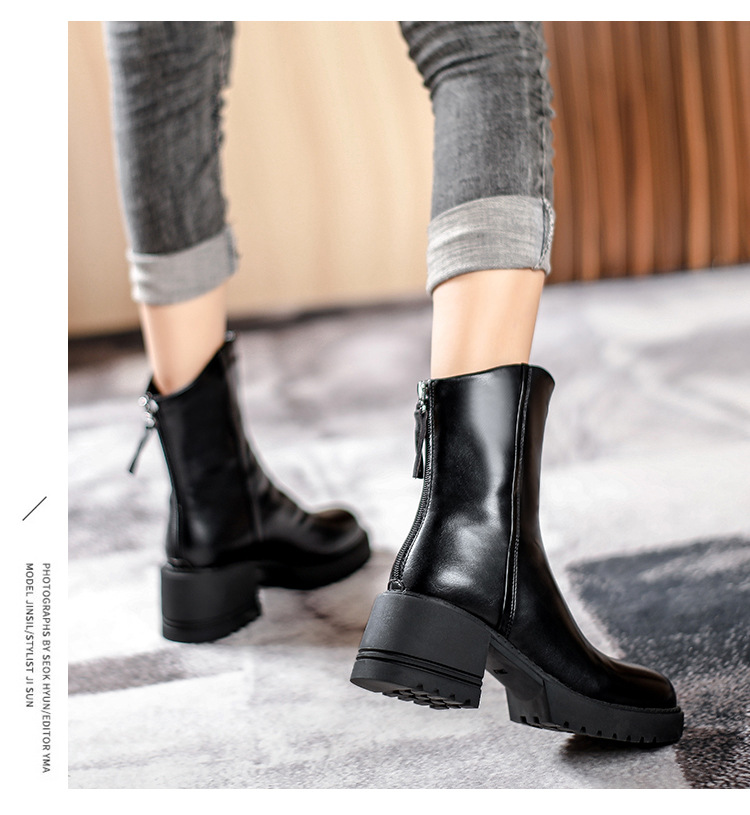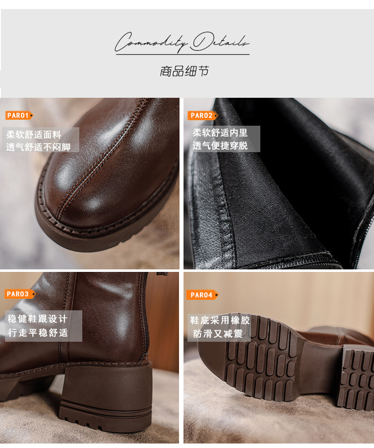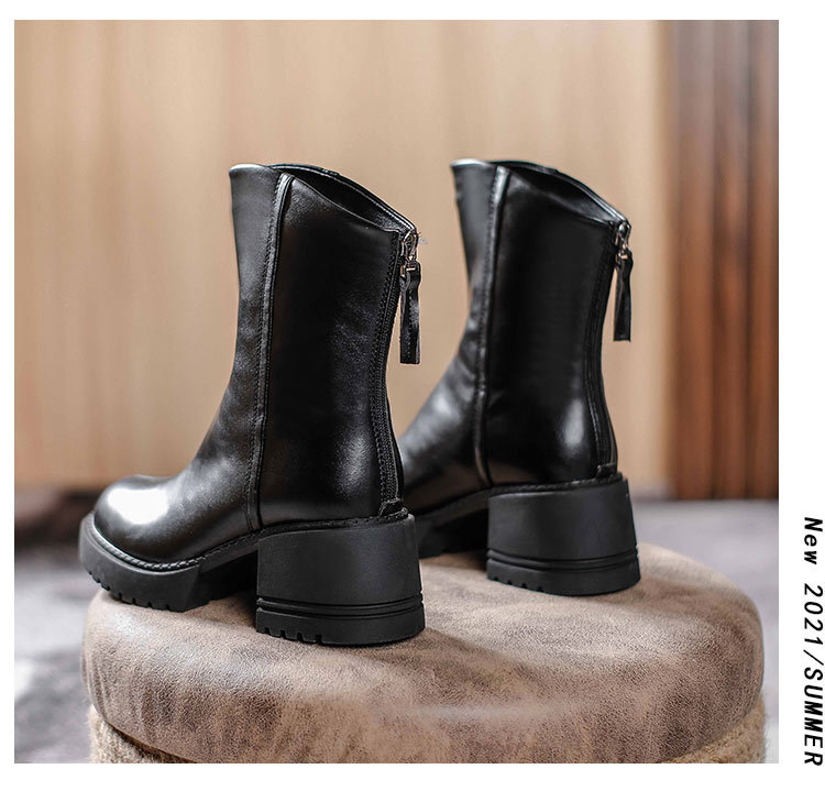 여성용 숏부츠, 두꺼운 굽, 두꺼운 밑창, 브리티시 스타일, 2024 신상 마틴 부츠, 하이힐, 중간 길이, 브라운, 레트로, 봄, 가을 싱글 부츠스토어 가기