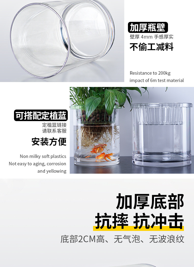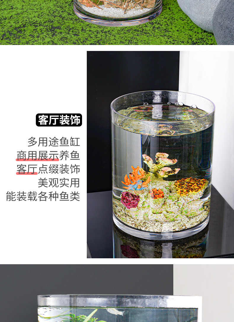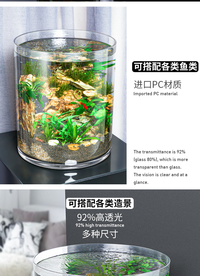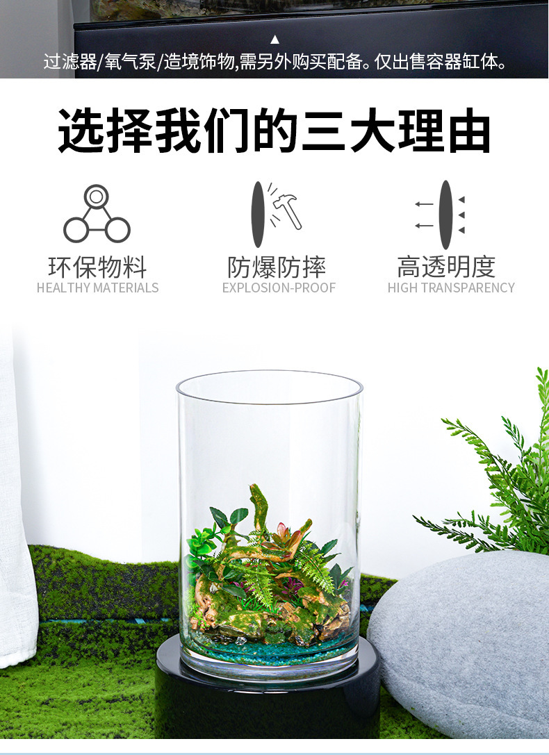원통형 낙하 방지 PC 어항 고투명 플라스틱 거실 조경 소형 비 유리 아크릴 생태 거북이 탱크스토어 가기