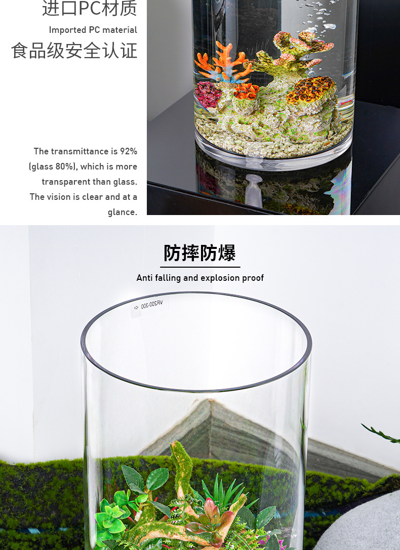 원통형 낙하 방지 PC 어항 고투명 플라스틱 거실 조경 소형 비 유리 아크릴 생태 거북이 탱크