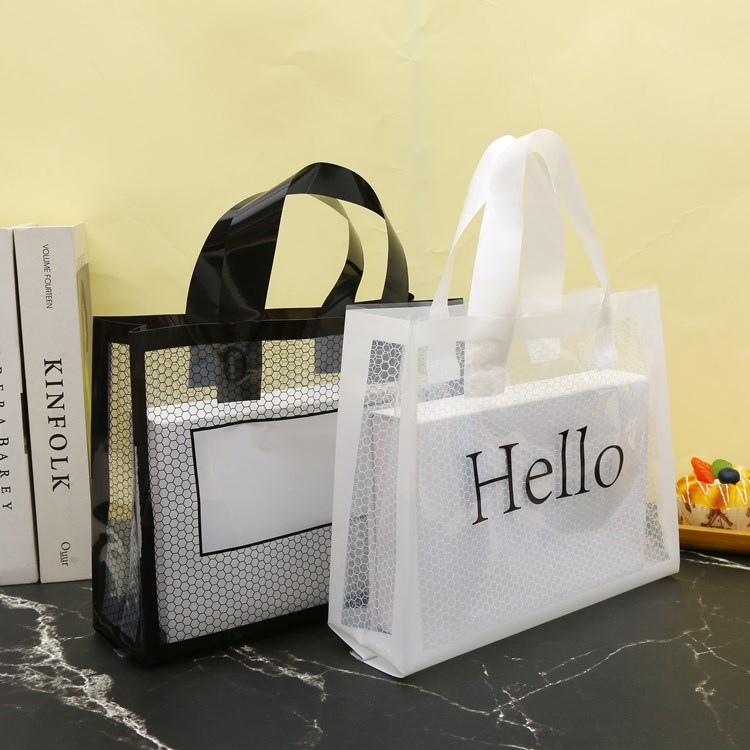재고 페 플라스틱 토트 백 화장품 쇼핑 선물 가방 신발 가게 아동복 매장 가방 로고 인쇄 가능