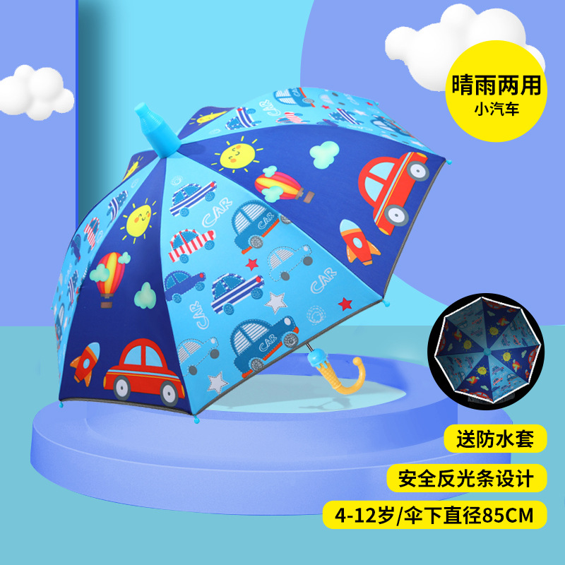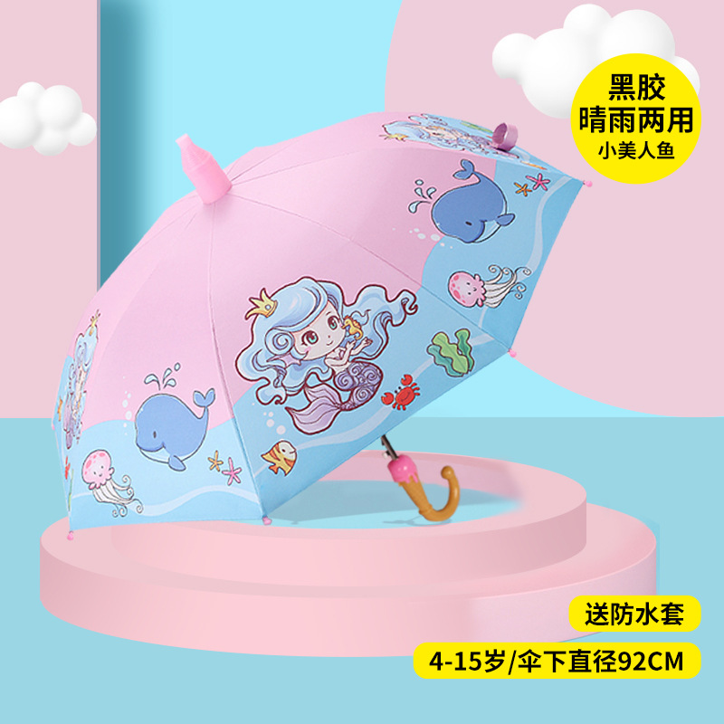 어린이 우산 도매 귀여운 만화 블랙 접착제 비 이중 목적 우산 방수 케이스 안전 핀치 방지 손 공장 직공급스토어 가기