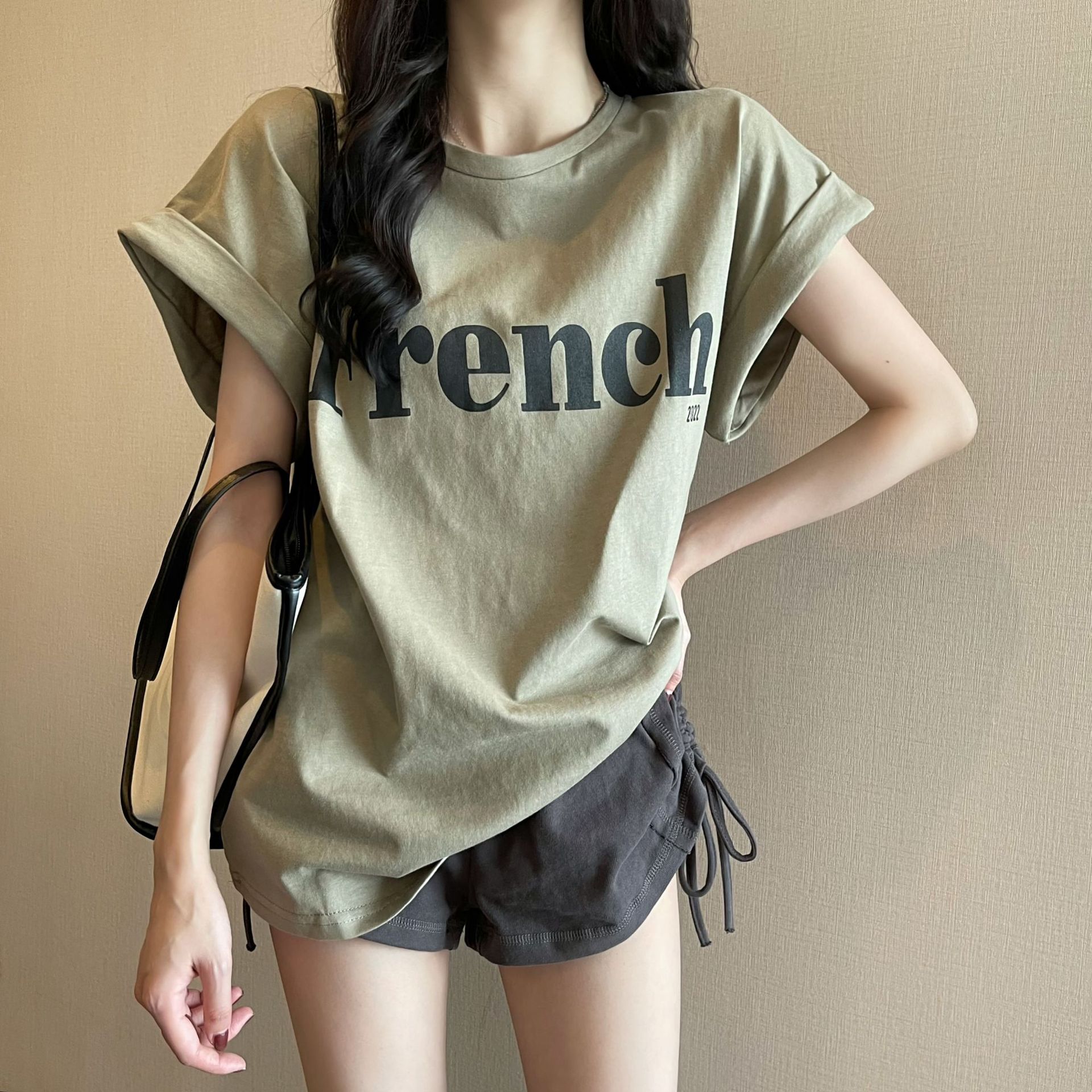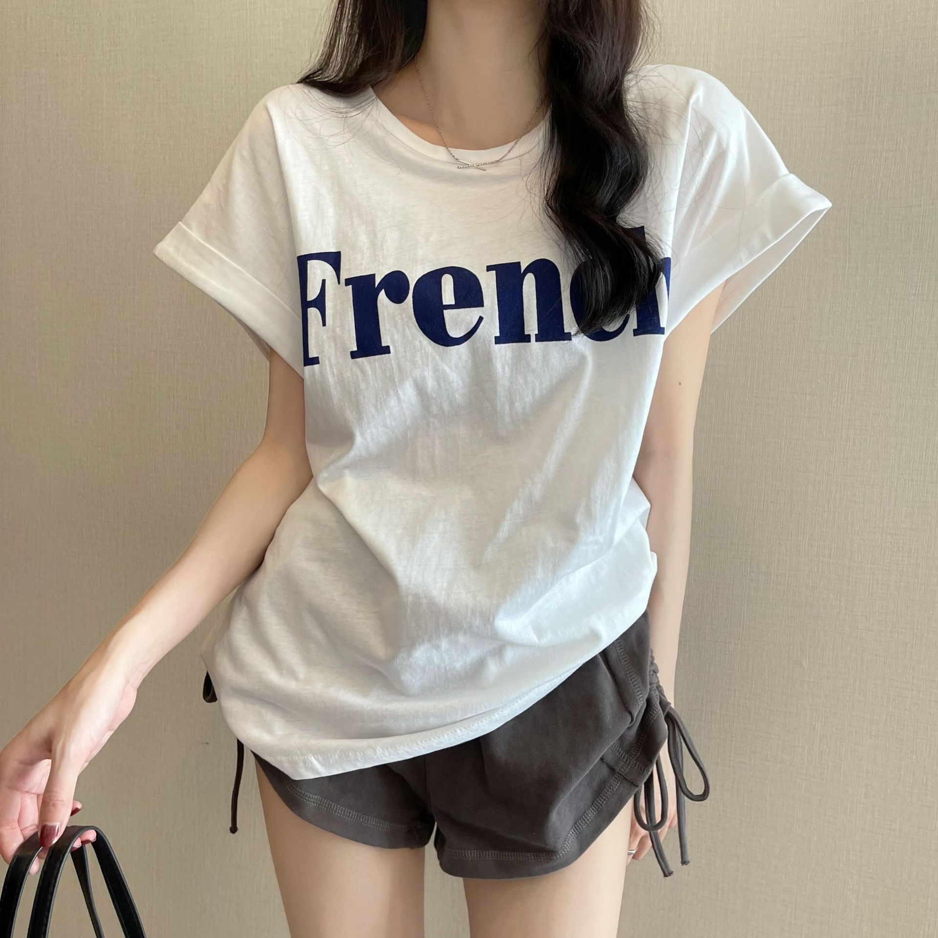 2025 새로운 한국어 버전 인터넷 연예인 ins 슈퍼 핫 슬림 오프 숄더 달콤하고 시원한 반팔 티셔츠 루즈 여성 여름 학생 탑스토어 가기