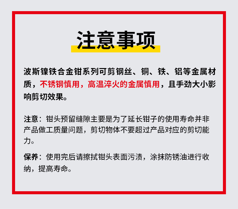 페르시아 니켈-철 합금 8 인치 와이어 펜치 뾰족한 코 펜치 대각선 펜치 6 인치 호랑이 펜치 손 도구