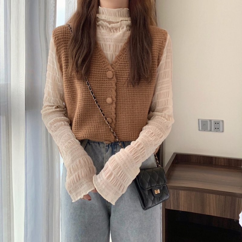 2026 여성용 니트 조끼 봄 신상 디자인 짧은 스타일 다용도 루즈핏 V넥 니트 가디건 조끼스토어 가기