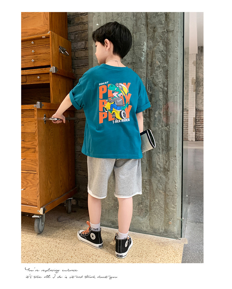 아동복 남성 및 여성용 반팔 티셔츠 면 느슨한 라운드 넥 INS 여름 새로운 어린이 아기 반팔 탑스토어 가기