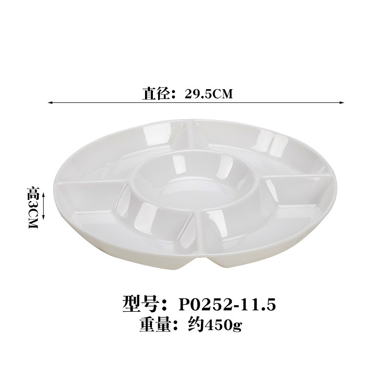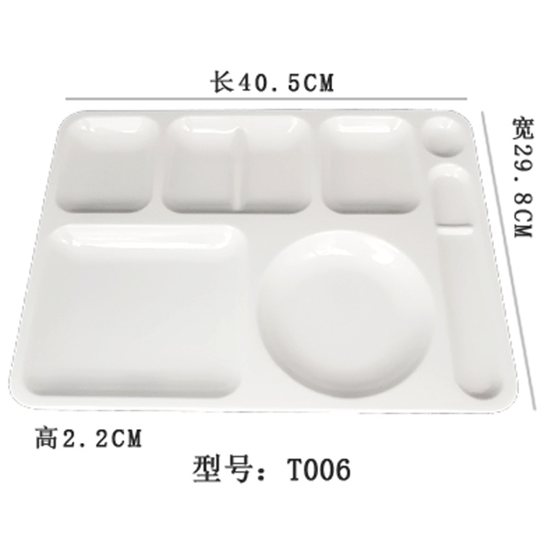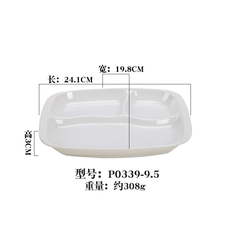 A8 화이트 패스트 푸드 플레이트 중국 패스트 푸드 플레이트 학교 식당 접시 분할 접시 식기 식사 멜라민 같은 도자기 직사각형