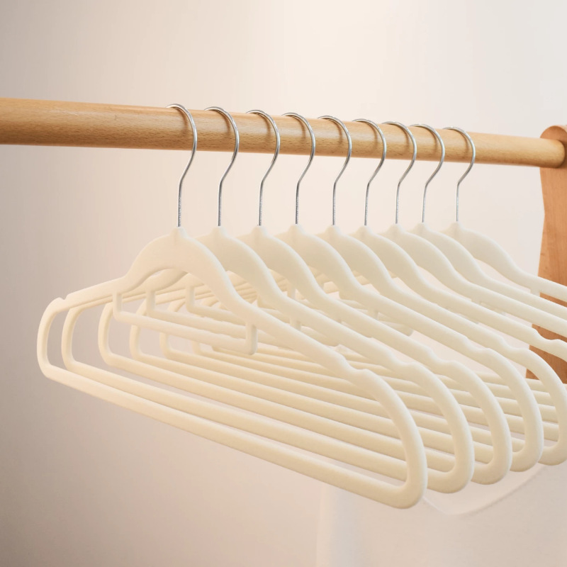 ABS 순수 투명 환경 투명 플로킹 행거 미끄럼 방지 원활한 가정용 발코니 옷 걸이 옷장 고급 보관 및 마감
