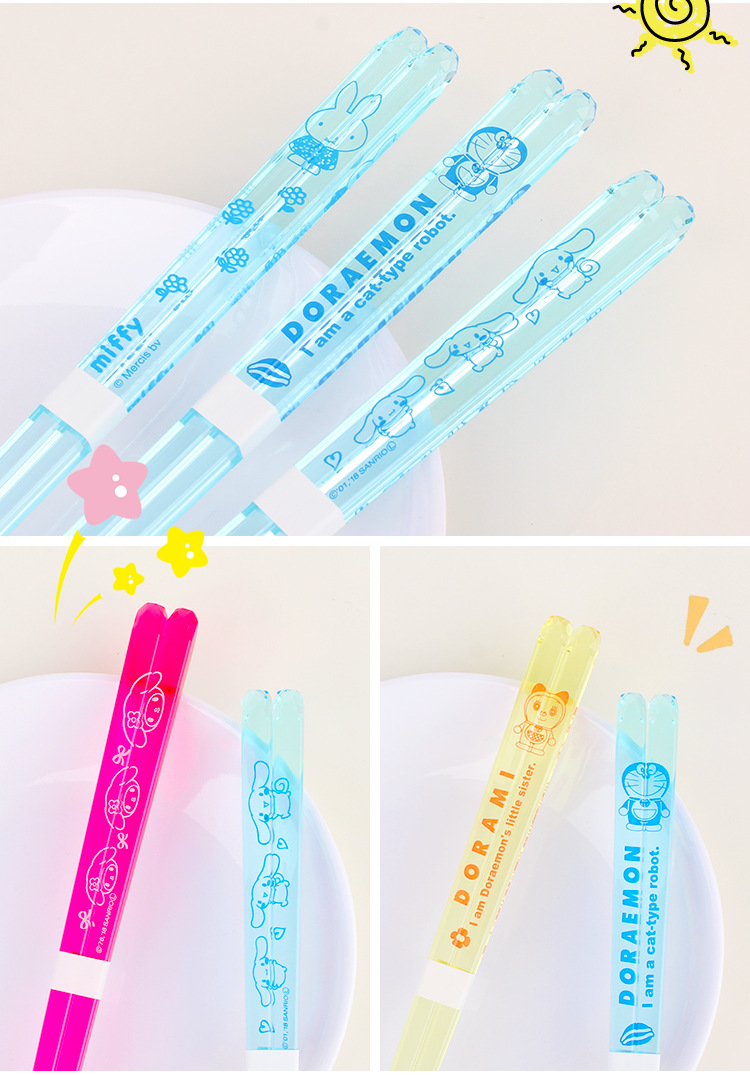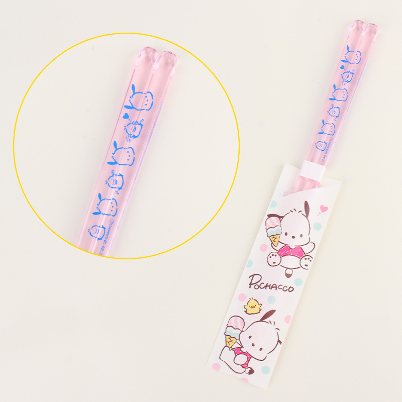 일본에서 수입 된 Jinzheng 도자기 귀여운 스타일 산리오 멜로디 투명 플라스틱 젓가락