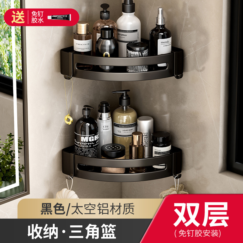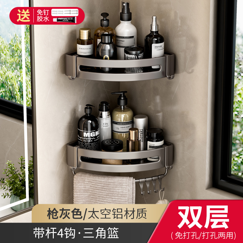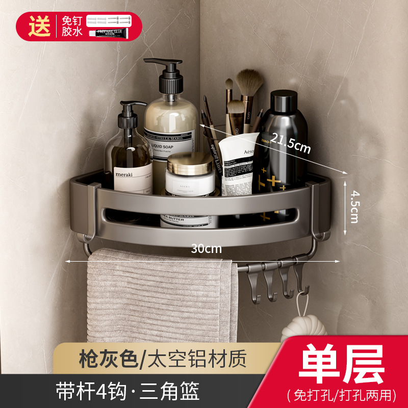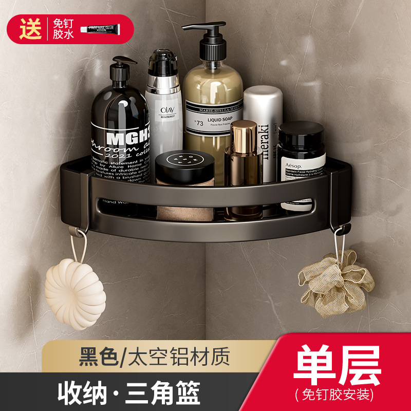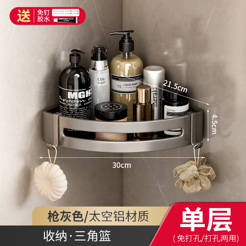 욕실 삼각형 랙 네일 프리 욕실 공간 알루미늄 코너 랙 벽걸이 형 펀치 프리 세면대 보관 랙