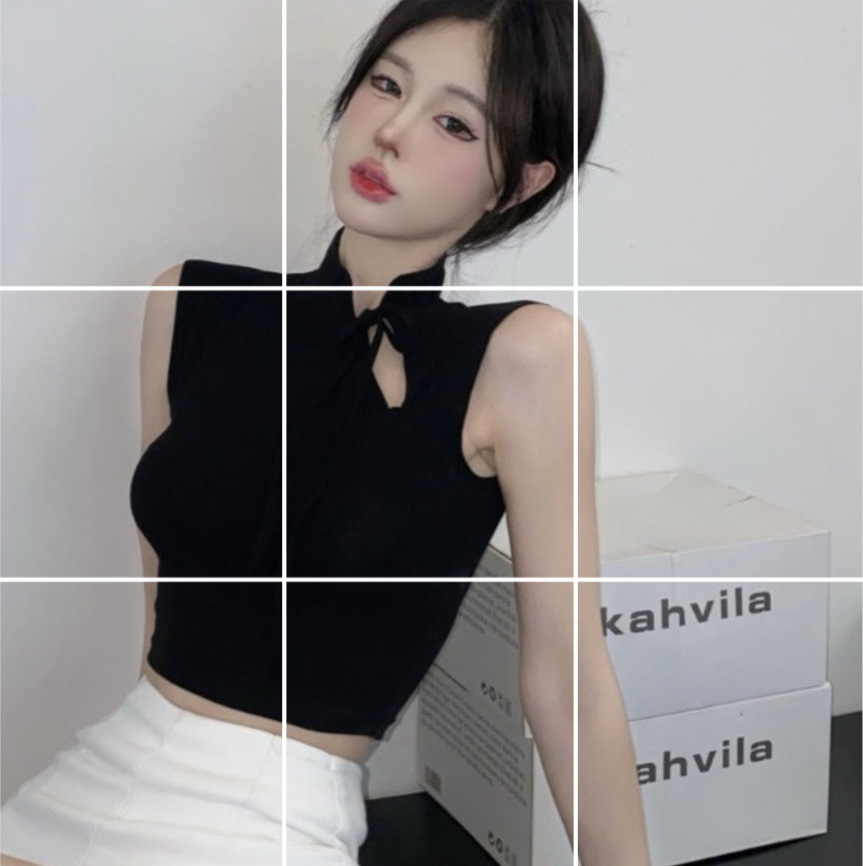 조끼 여성 디자인 센스 레이스 업 할로우 여름 새로운 배꼽 짧은 섹시 탑 8828 화이트 레이스 업 조끼스토어 가기