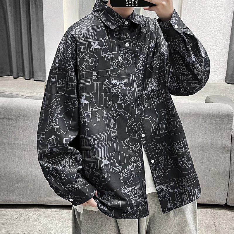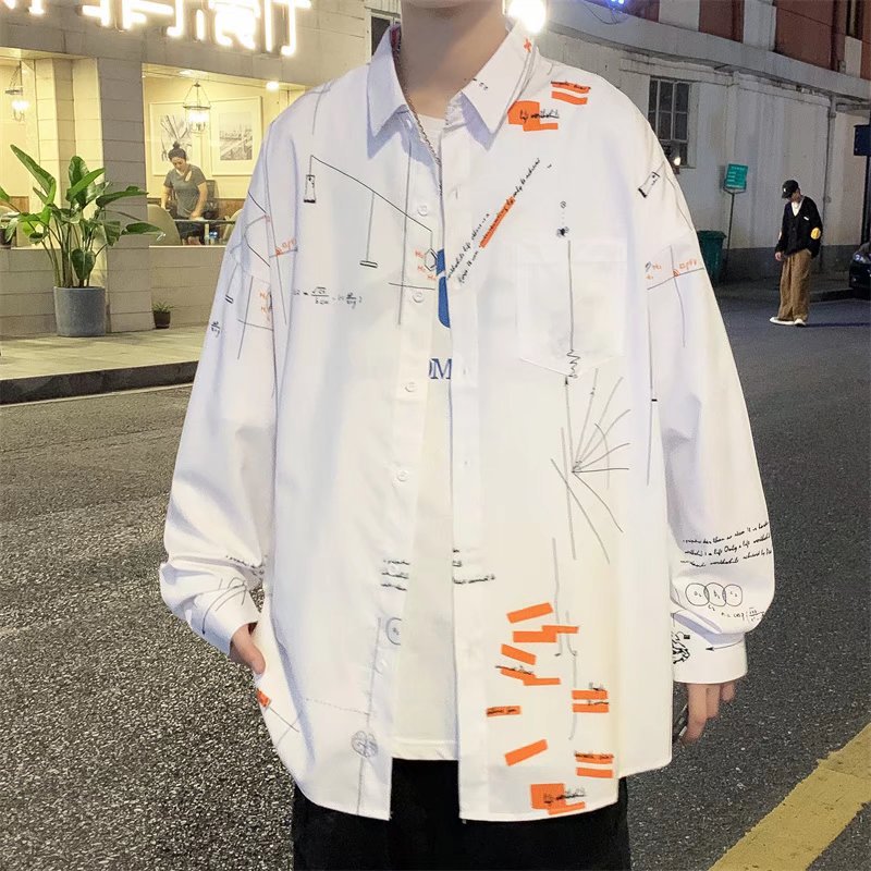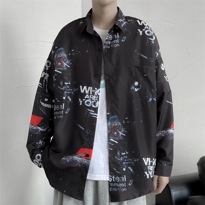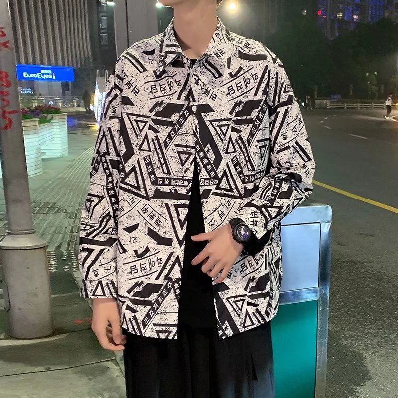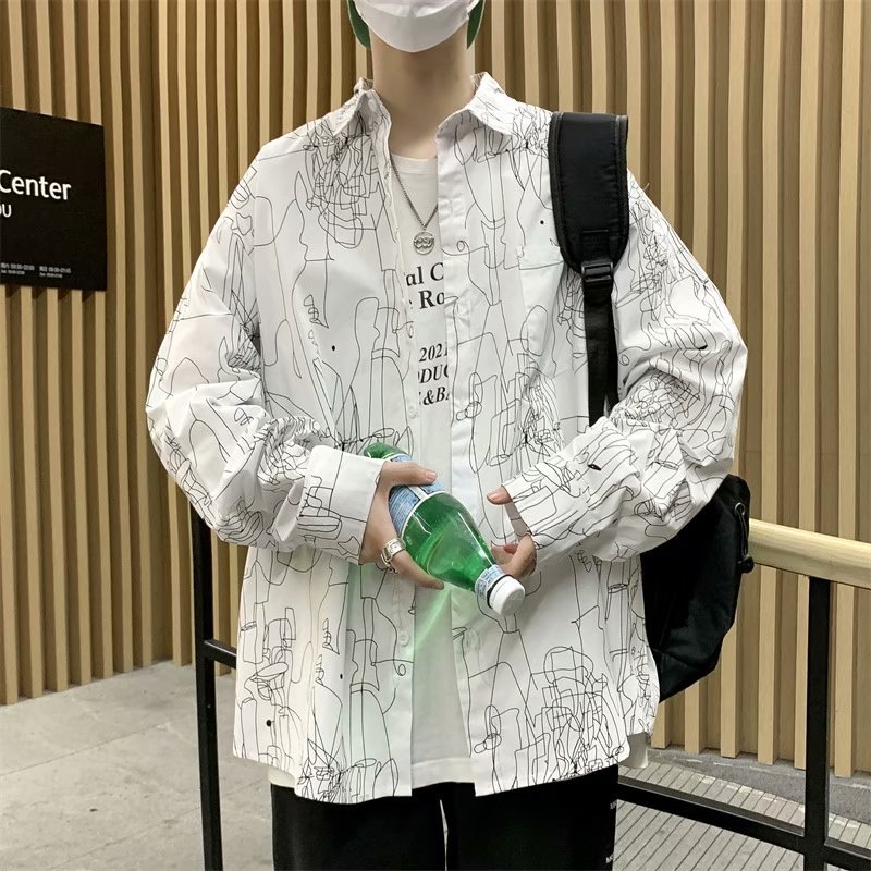일본식 셔츠 남자의 유행 캐주얼 한국 스타일 유행 모든 매치 탑 옷 스트리트 유행 셔츠 남자의 긴 소매 셔츠스토어 가기