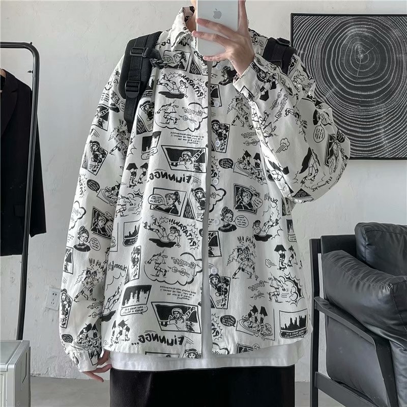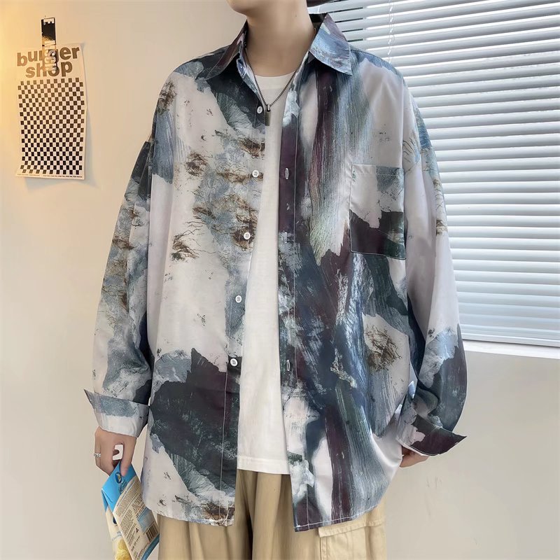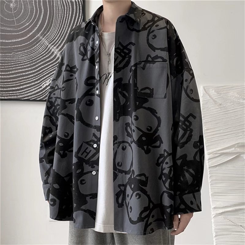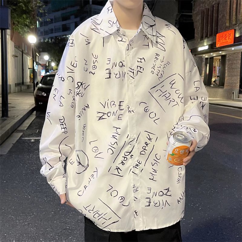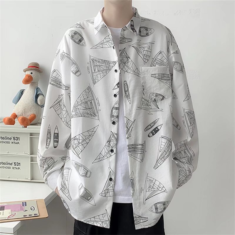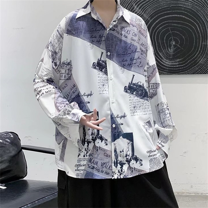 일본식 셔츠 남자의 유행 캐주얼 한국 스타일 유행 모든 매치 탑 옷 스트리트 유행 셔츠 남자의 긴 소매 셔츠스토어 가기