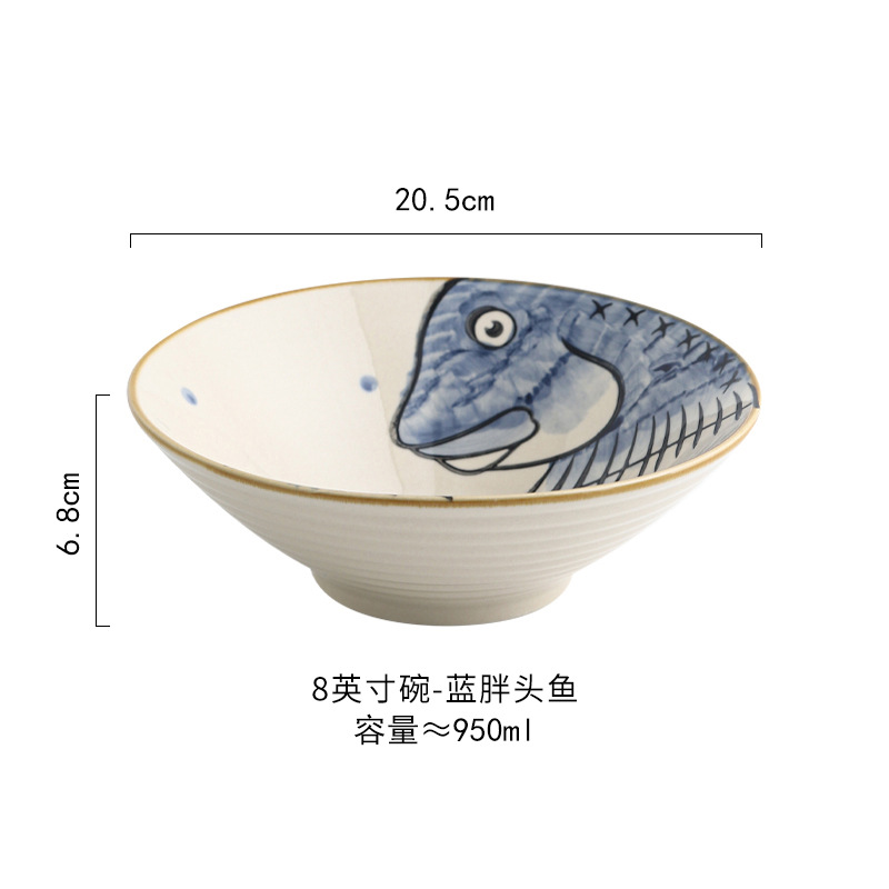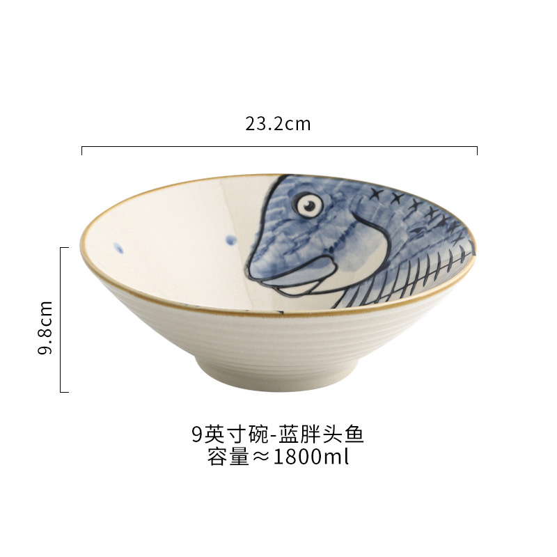 일본식 라면 그릇, 도자기 가정용 대형 식기, 국수 그릇, 달팽이 국수 그릇, 라면 그릇, 전자레인지 사용 가능