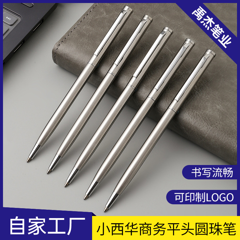 샤오시화 플랫헤드 볼펜 호텔 및 게스트하우스용 펜 비즈니스 광고용 스테인리스 천연색 금속 볼펜 도매