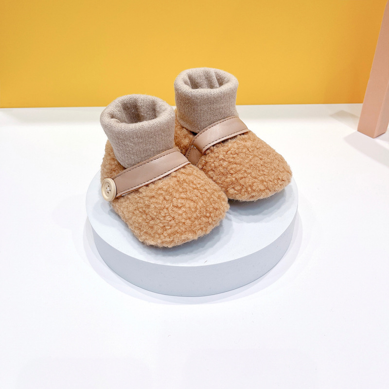 가을과 겨울 2022 새로운 아기 신발 아기 부드러운 바닥 미끄럼 방지 유아 신발 기모 두꺼운 면 신발 커버스토어 가기