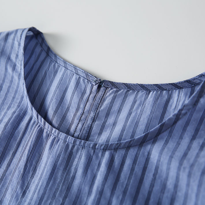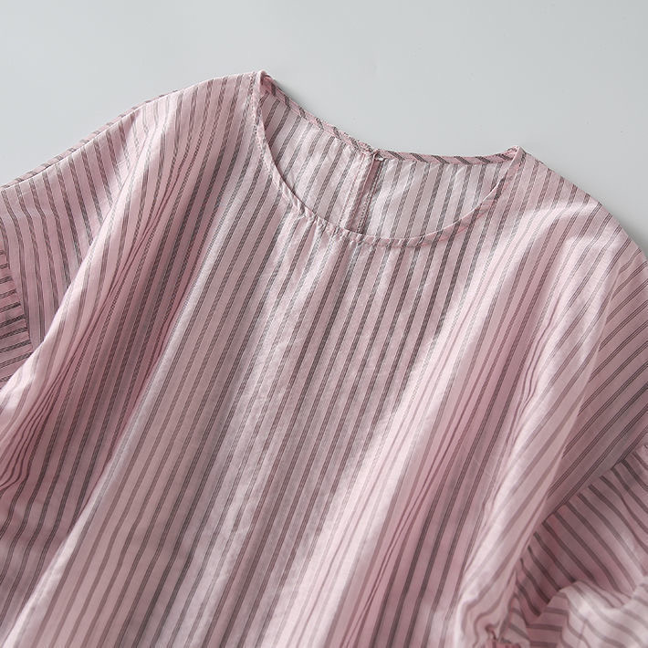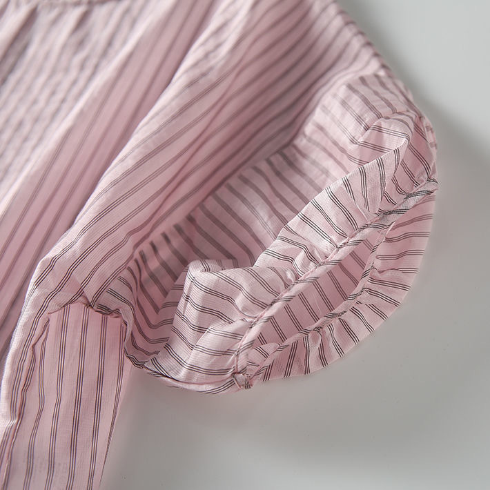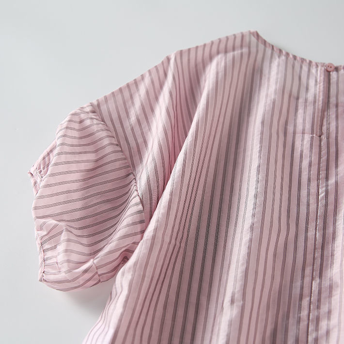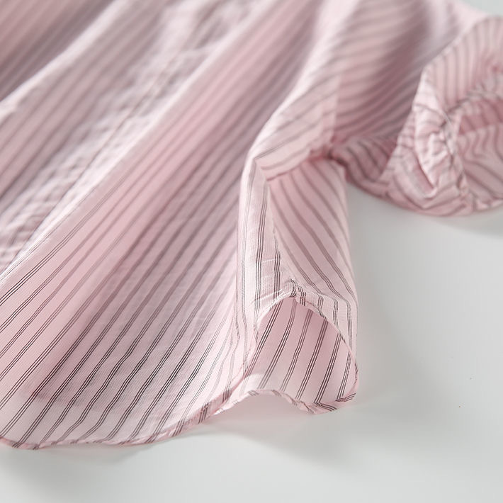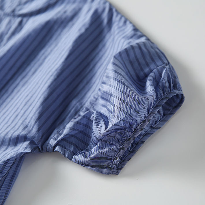 디자인감 있는 반팔 스트라이프 셔츠 여성용 2026 여름 캐주얼 루즈핏 드레이프 탑 슬리밍 여성복스토어 가기
