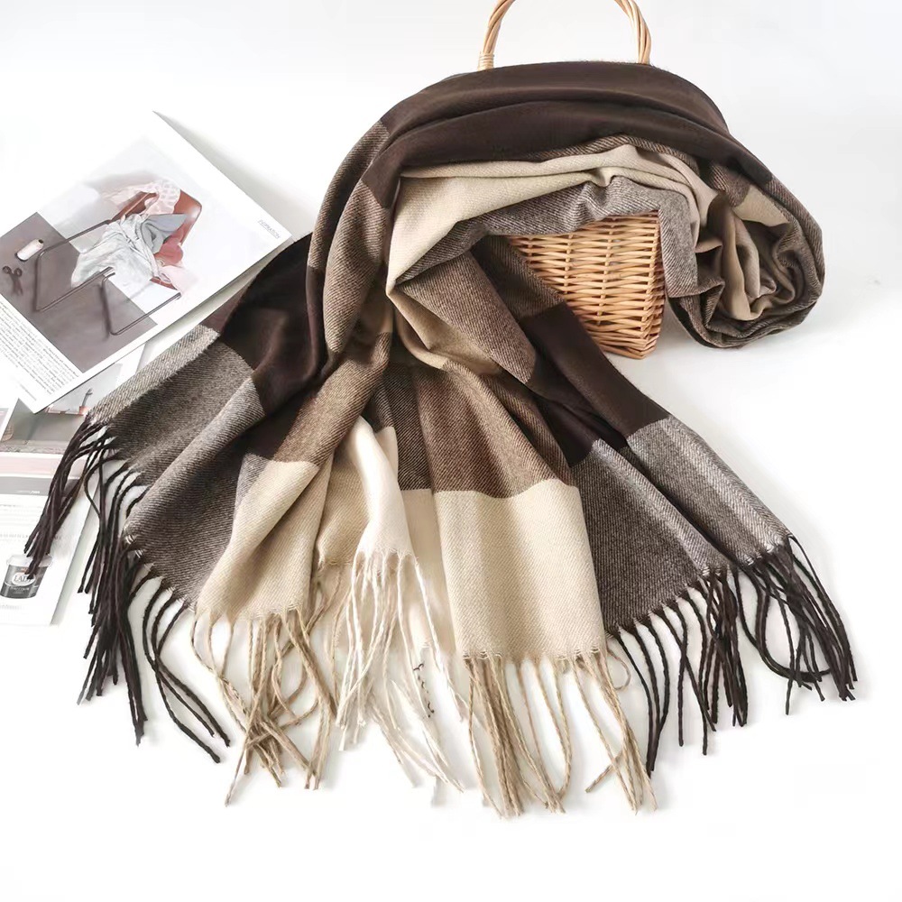 2025 가을 겨울 클래식 체크 무늬 모조 캐시미어 스카프 숄 다채로운 색상 따뜻하고 다용도 한국 스타일 패션 스카프 여성용