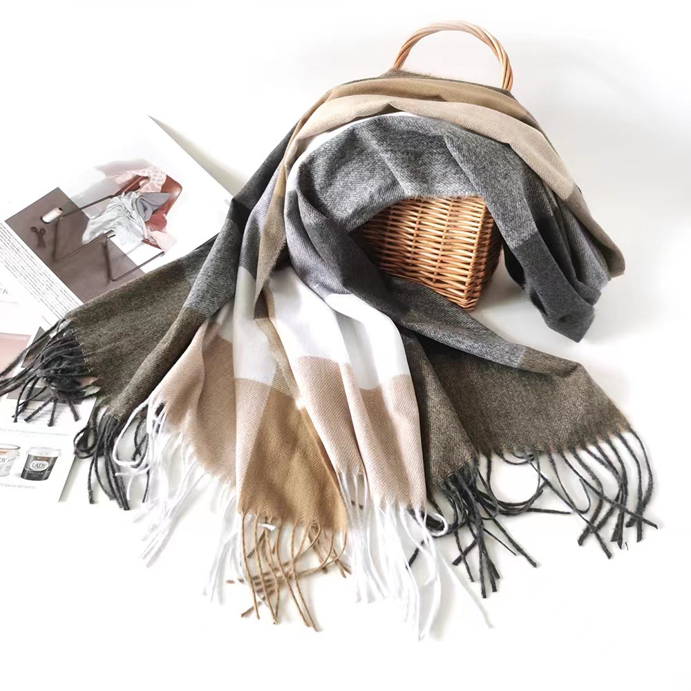 2025 가을 겨울 클래식 체크 무늬 모조 캐시미어 스카프 숄 다채로운 색상 따뜻하고 다용도 한국 스타일 패션 스카프 여성용스토어 가기