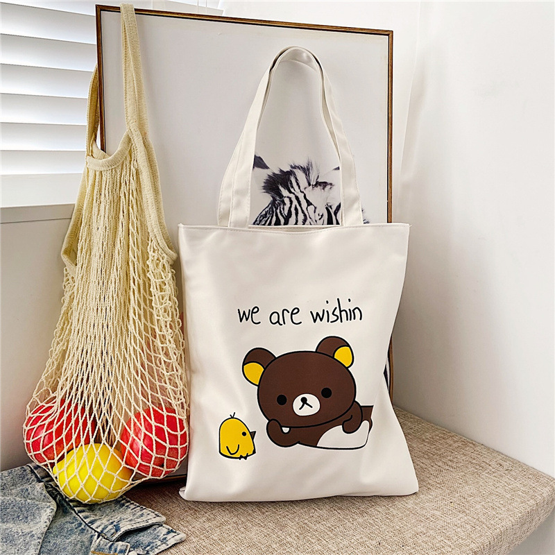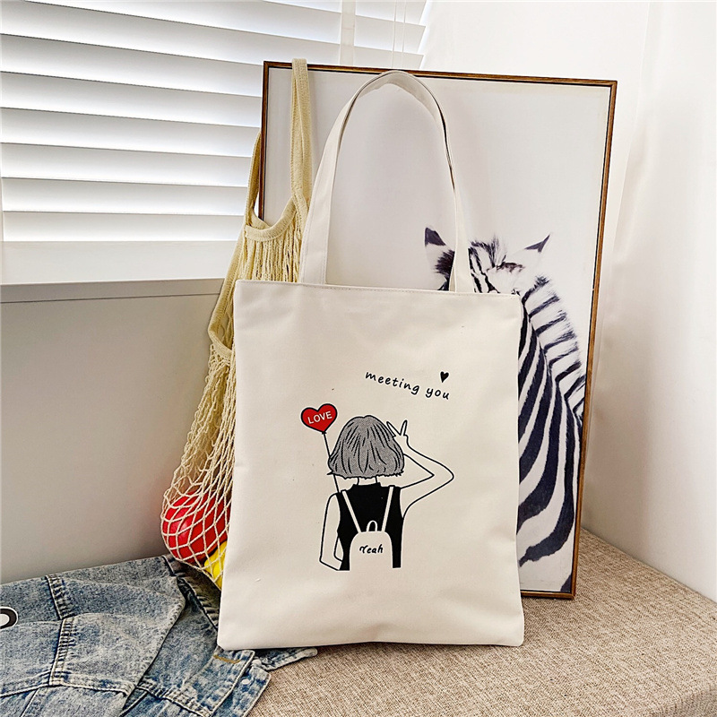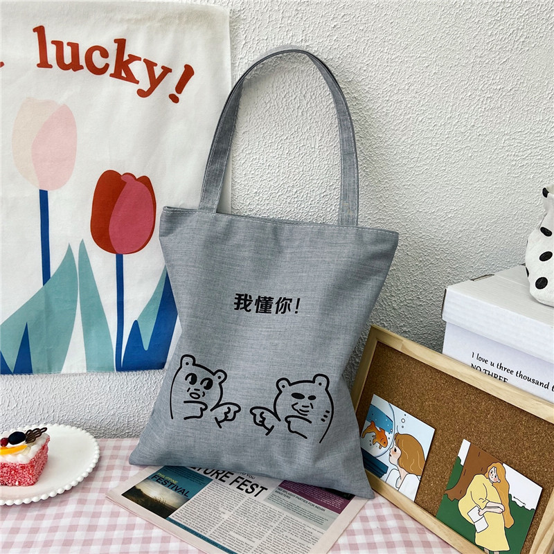 2023 새로운 캔버스 가방 신선한 스타일 예술적 숄더백 여성용 일본과 한국 하라주쿠 지퍼 쇼핑백 학생 천 가방스토어 가기