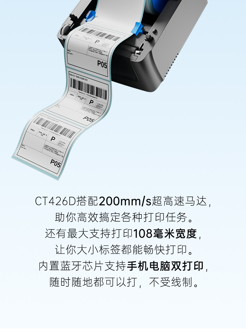 • CT426D 블루투스 버전 [휴대폰 + 컴퓨터 인쇄 지원] 라벨 용지 3롤 포함