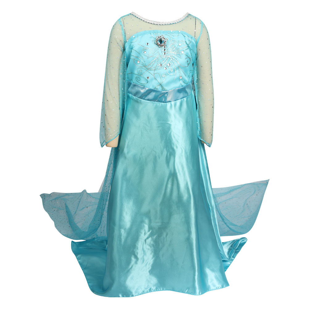 유럽 및 미국 무역 아동복 여아 드레스 겨울왕국 프린트 엘사 공주 드레스 어린이 공연 드레스 연한 파란색